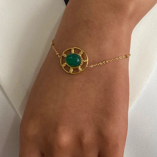 ステンレス304 低ニッケル 水に濡れても錆びにくい 18Kゴールドメッキ ブレスレット 天然石風ストーン 【YJ01878】
