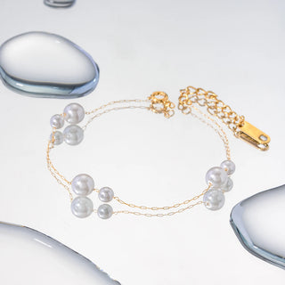 ステンレス304 低ニッケル 水に濡れても錆びにくい 18Kゴールドメッキ ブレスレット パール 【YJ01783】