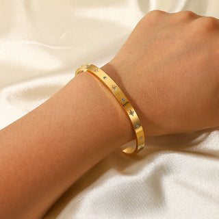 ステンレス304 低ニッケル 水に濡れても錆びにくい 18Kゴールドメッキ ブレスレット ジルコニア 【YJ01748】