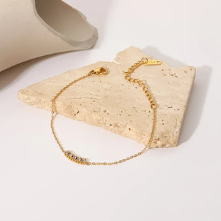 ステンレス304 低ニッケル 水に濡れても錆びにくい 18Kゴールドメッキ ブレスレット チェーン ジルコニア 【YJ01750】