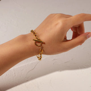 ステンレス304 低ニッケル 水に濡れても錆びにくい 18Kゴールドメッキ ブレスレット【YJ01716】