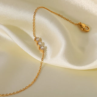 ステンレス304 低ニッケル 水に濡れても錆びにくい 18Kゴールドメッキ ブレスレット ハート ジルコニア 【YJ01806】