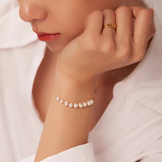 ステンレス304 低ニッケル 水に濡れても錆びにくい 18Kゴールドメッキ ブレスレット パール 【YJ01651】