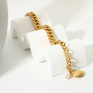 ステンレス304 低ニッケル 水に濡れても錆びにくい 18Kゴールドメッキ ブレスレット チャーム シェル 貝殻 【YJ01947】