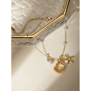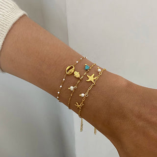 ステンレス304 低ニッケル 水に濡れても錆びにくい 18Kゴールドメッキ ブレスレット シェル 貝殻 ヒトデ 【YJ01573】