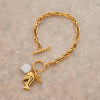ステンレス304 低ニッケル 水に濡れても錆びにくい 18Kゴールドメッキ ブレスレット シェル 貝殻 魚 【YJ01460】