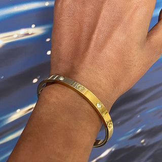 ステンレス304 低ニッケル 水に濡れても錆びにくい 18Kゴールドメッキ ブレスレット ジルコニア 【YJ01334】