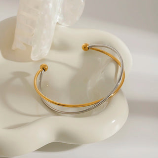 ステンレス304 低ニッケル 水に濡れても錆びにくい 18Kゴールドメッキ ブレスレット スパイラル 【YJ01620】