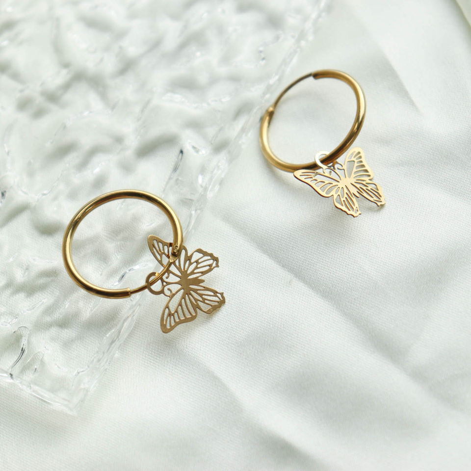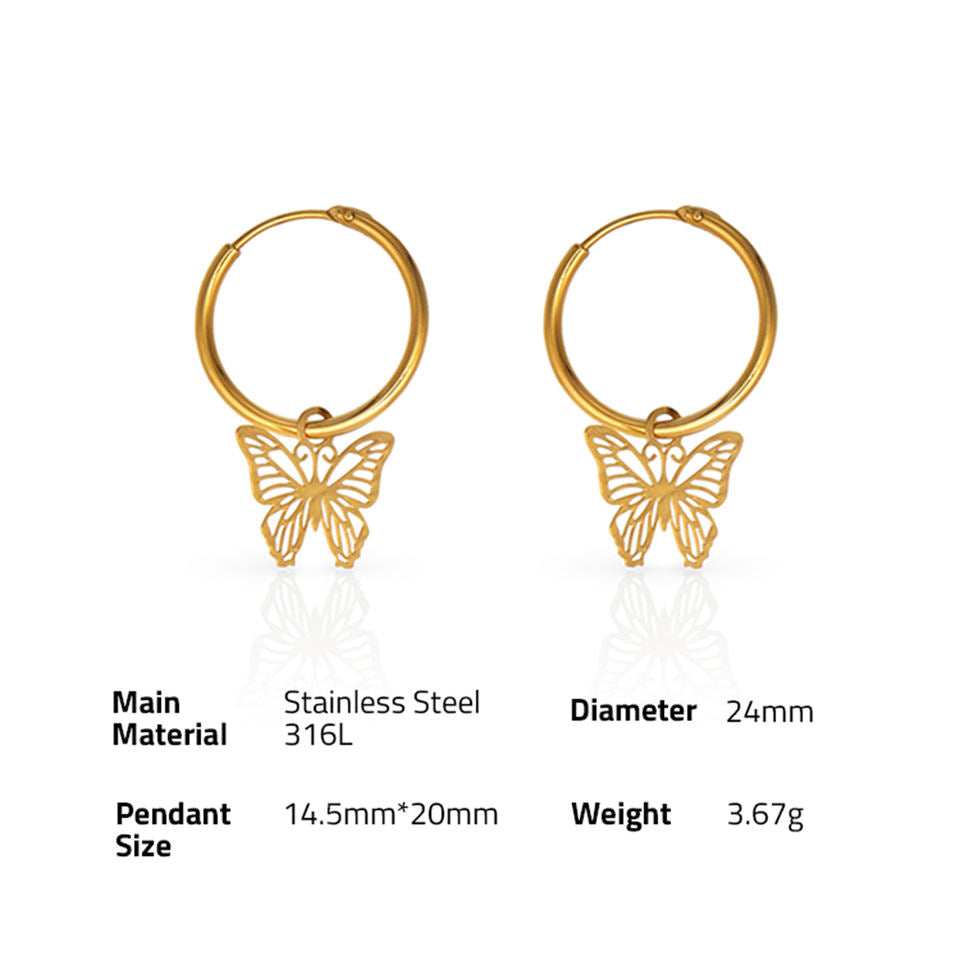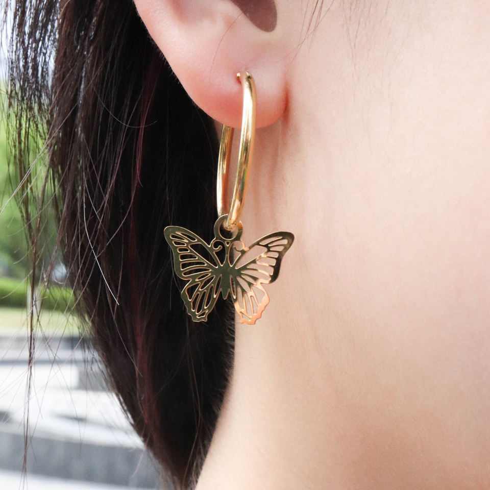 316Lサージカルステンレス ピアス フープ 蝶々 バタフライ 【NY00658】