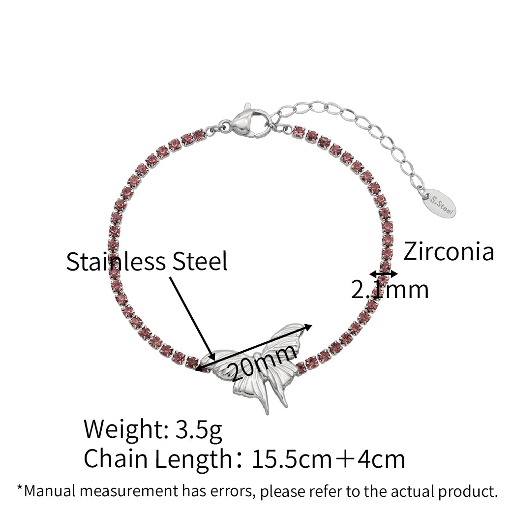 316Lサージカルステンレス ブレスレットジルコニア 蝶々 バタフライ 【NY00817】