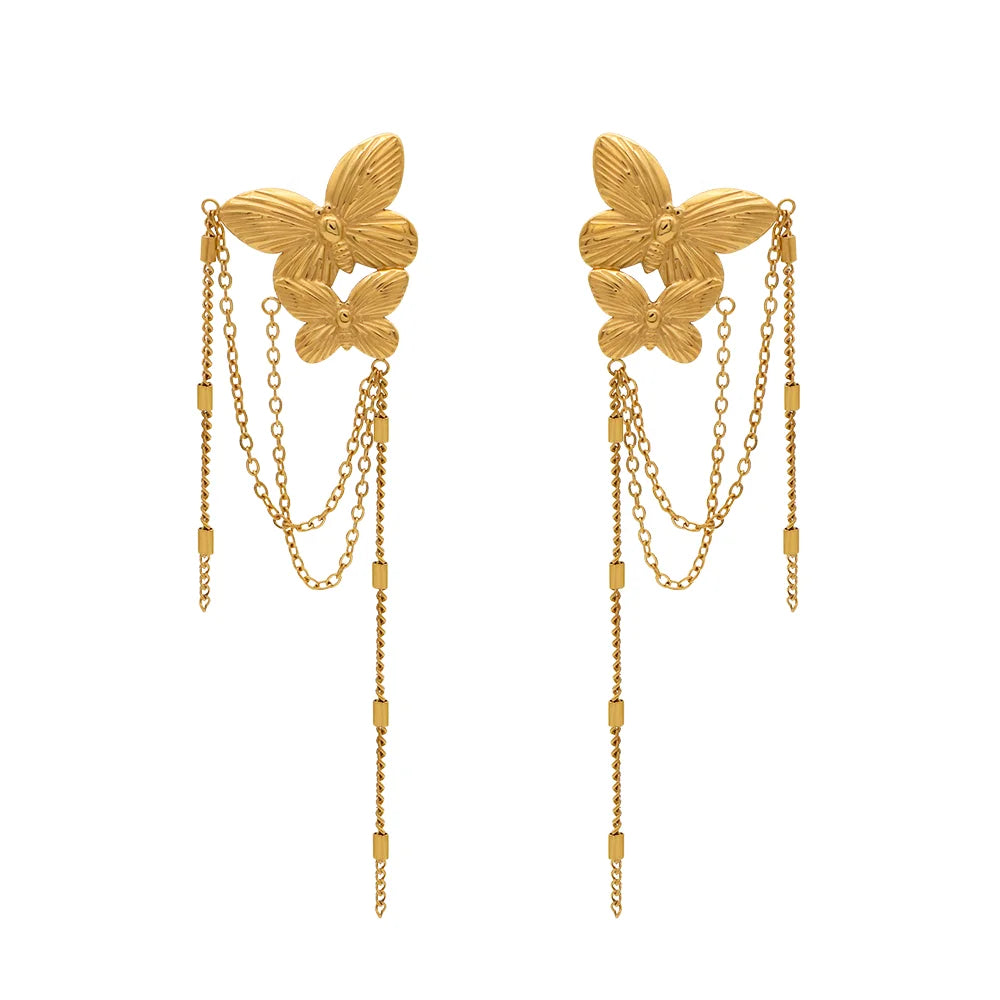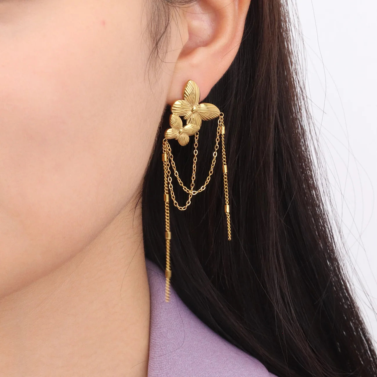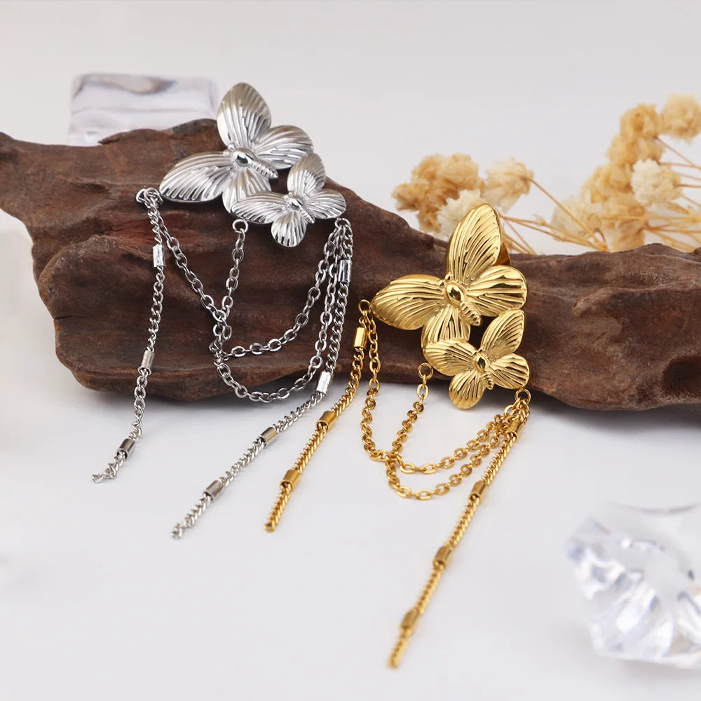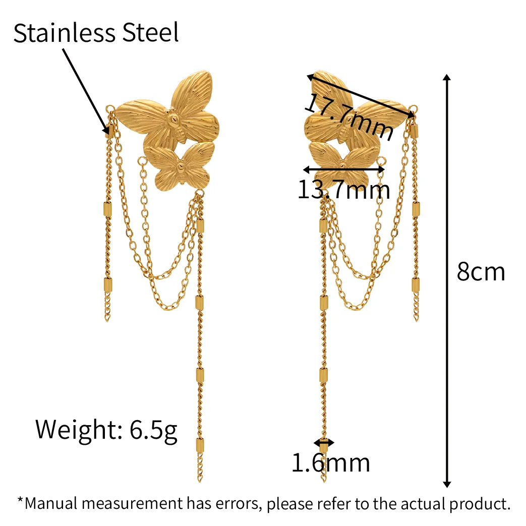 316Lサージカルステンレス ピアス タッセル 蝶々 バタフライ チェーン 【NY00960】