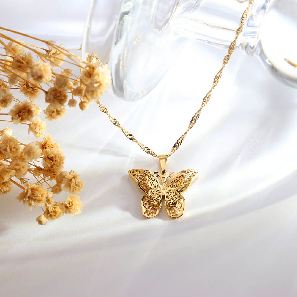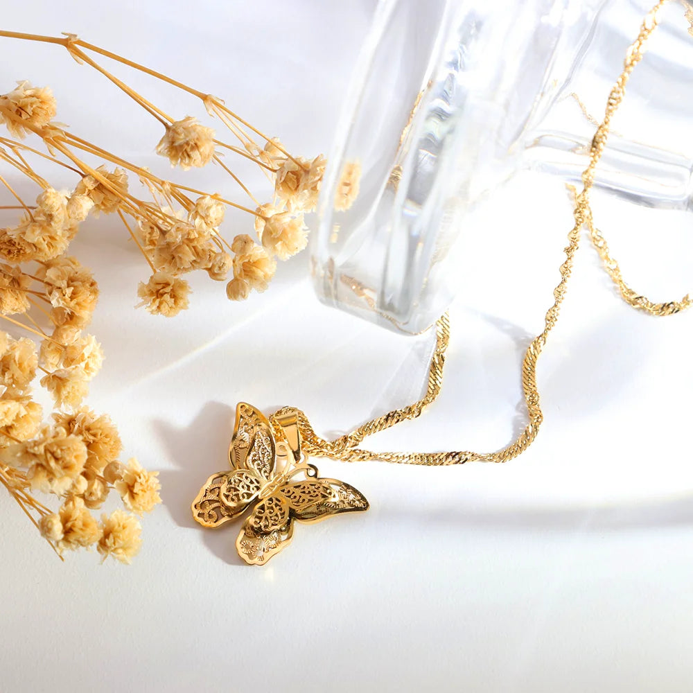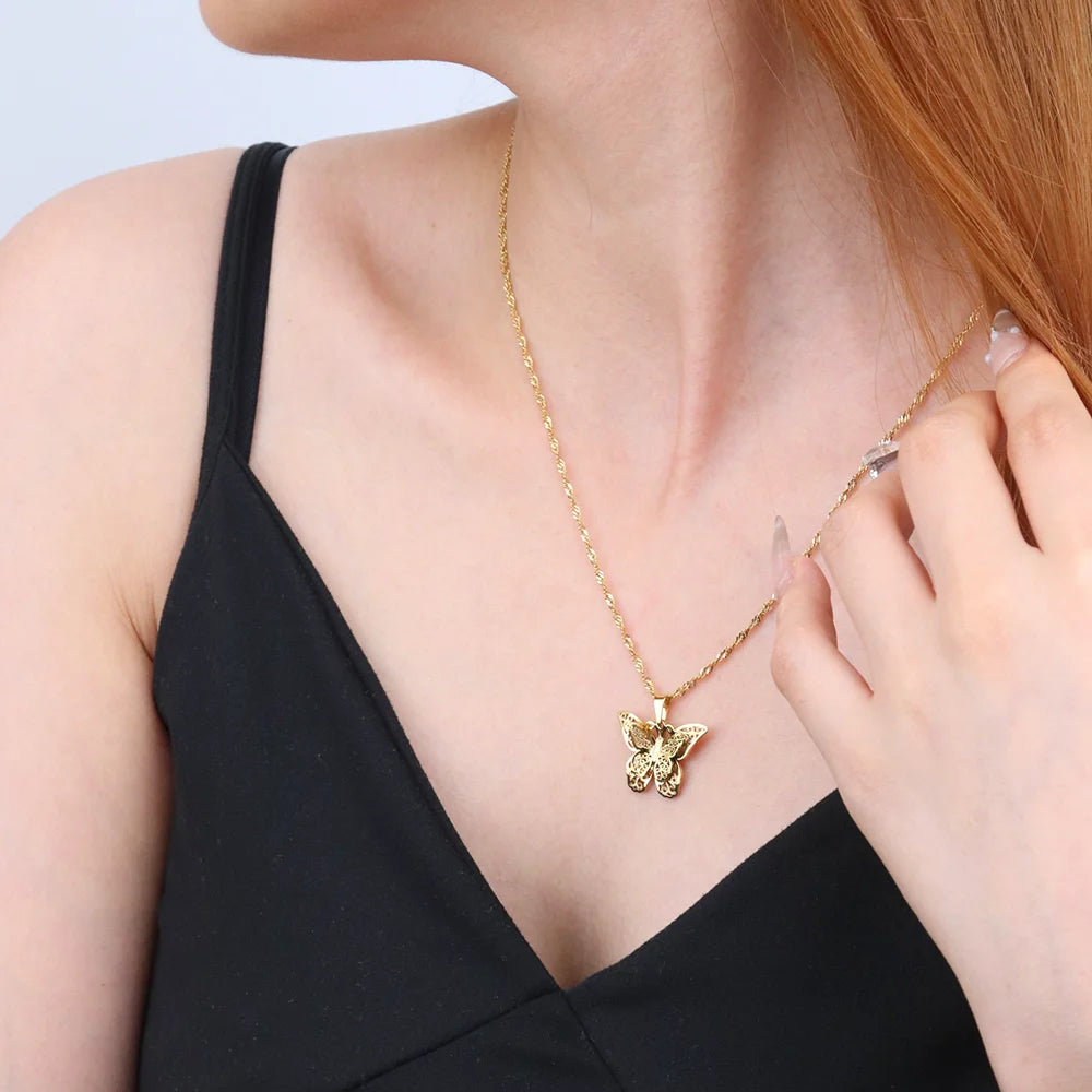 316Lサージカルステンレス ネックレス 蝶々 バタフライ 【NY01734】