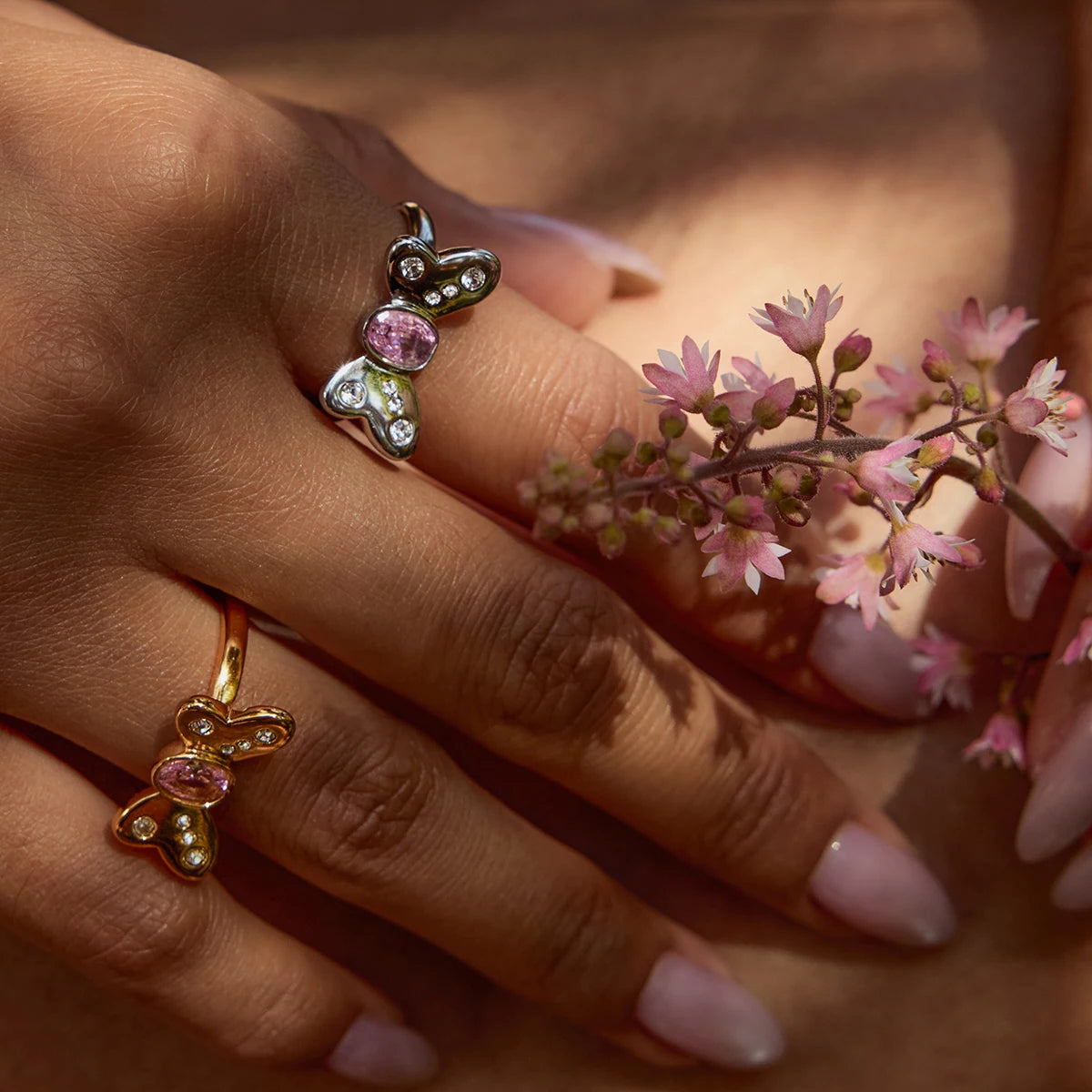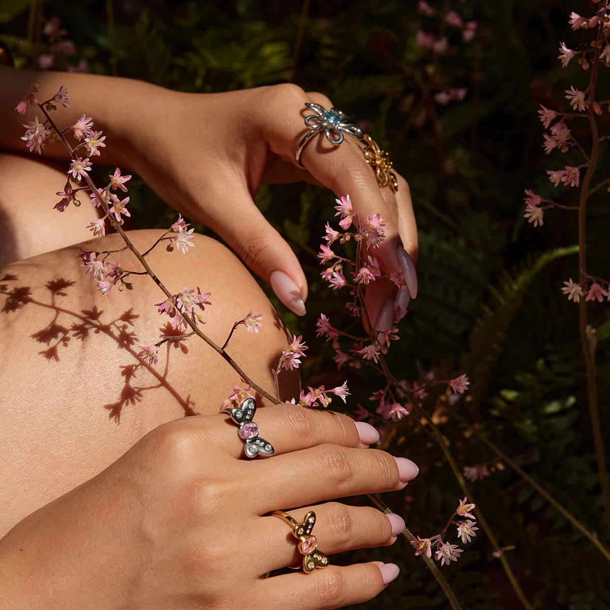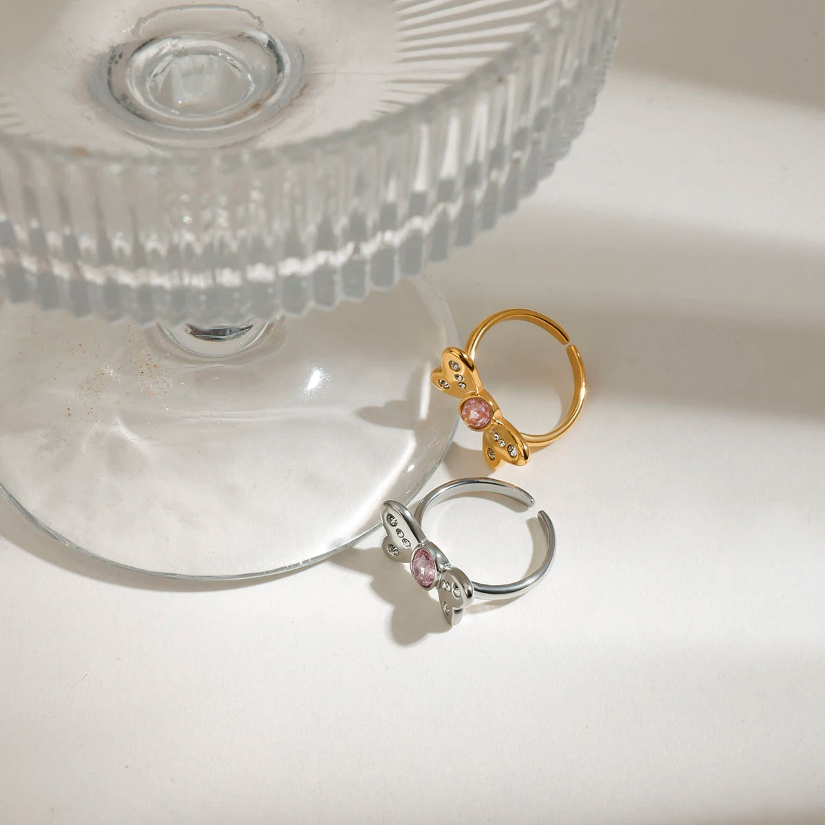 ステンレス304 ニッケルフリー 水に濡れても錆びにくい 18Kゴールドメッキ リング 蝶々 バタフライ ジルコニア 【YJ00919】