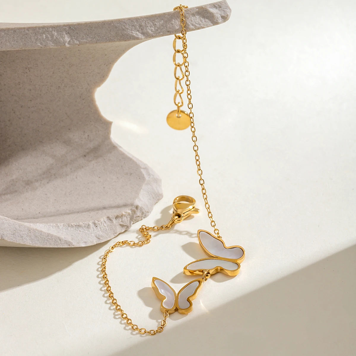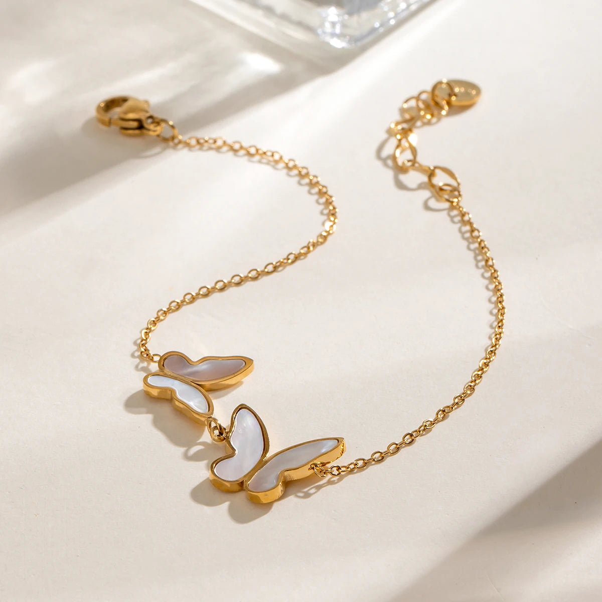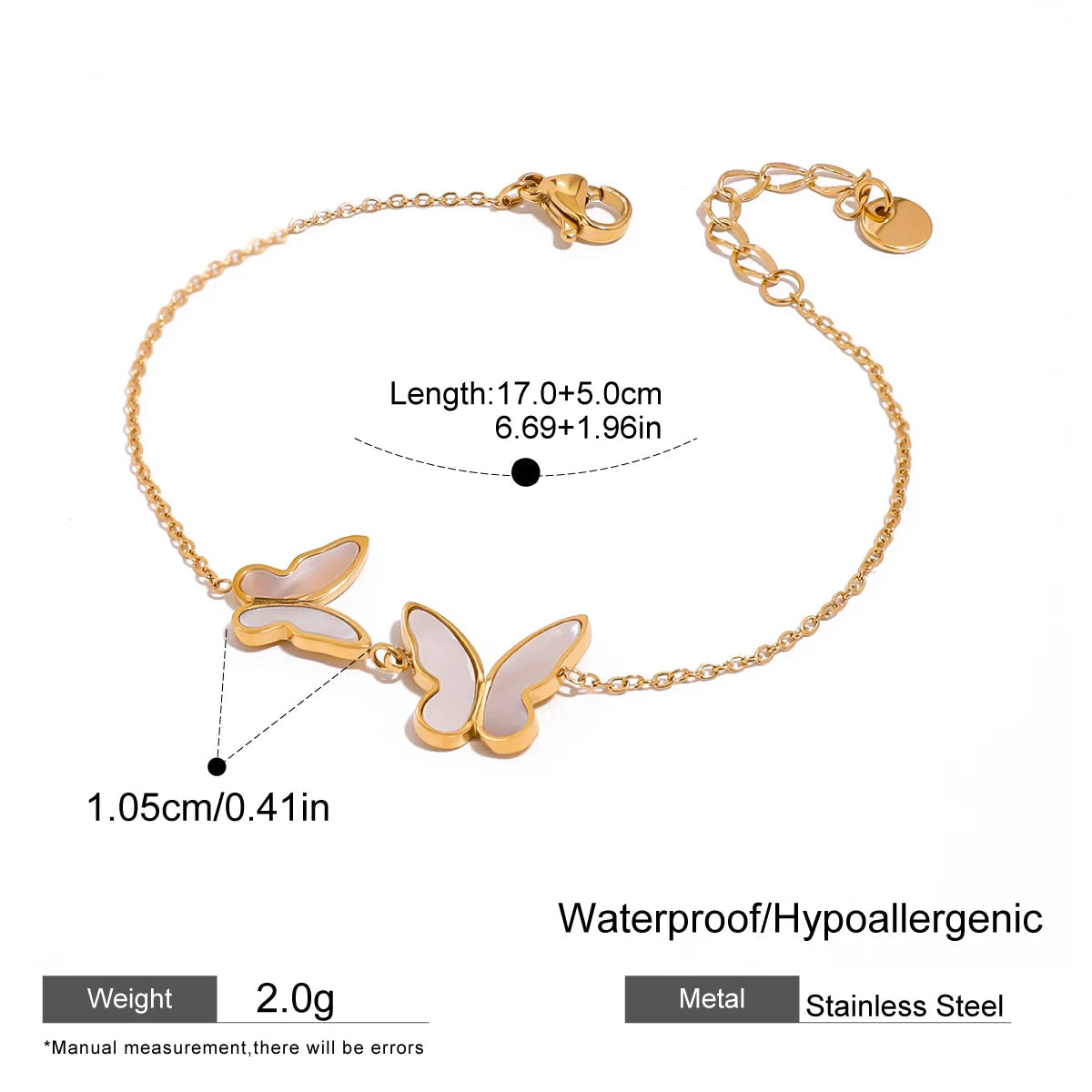 ステンレス304 低ニッケル 水に濡れても錆びにくい 18Kゴールドメッキ ブレスレット シェル 蝶々 バタフライ 【YJ01022】