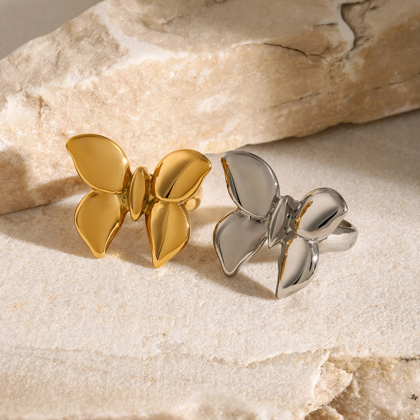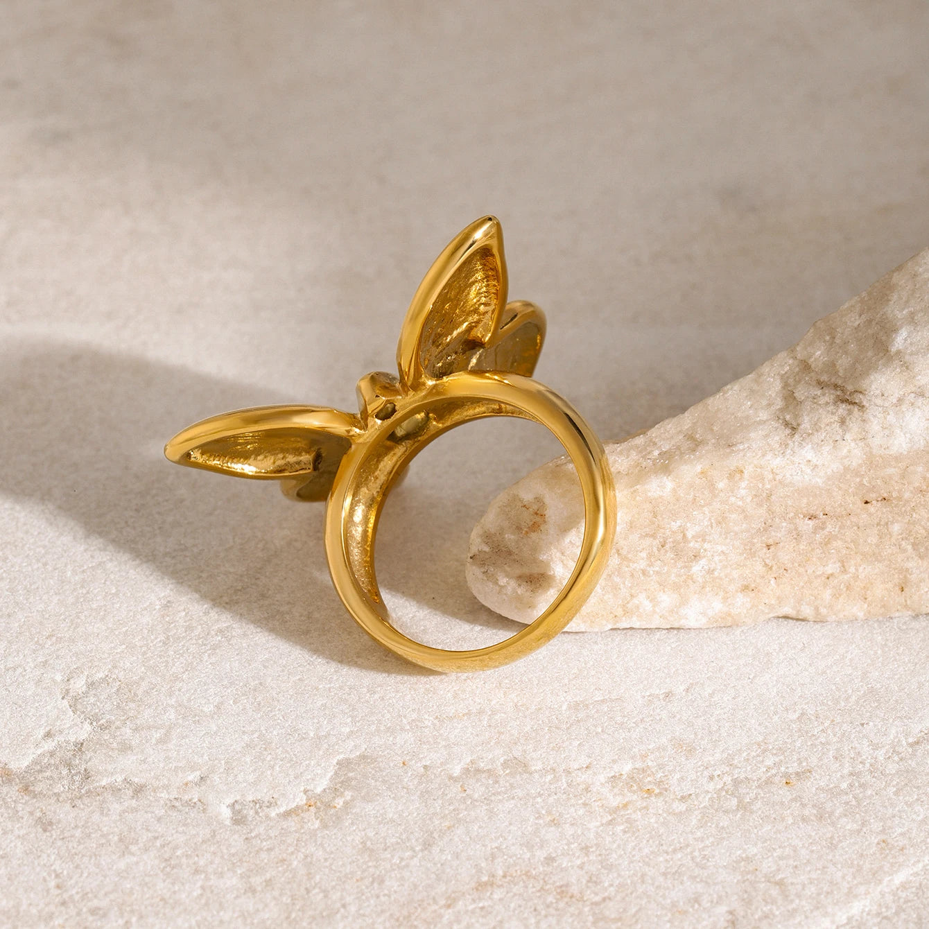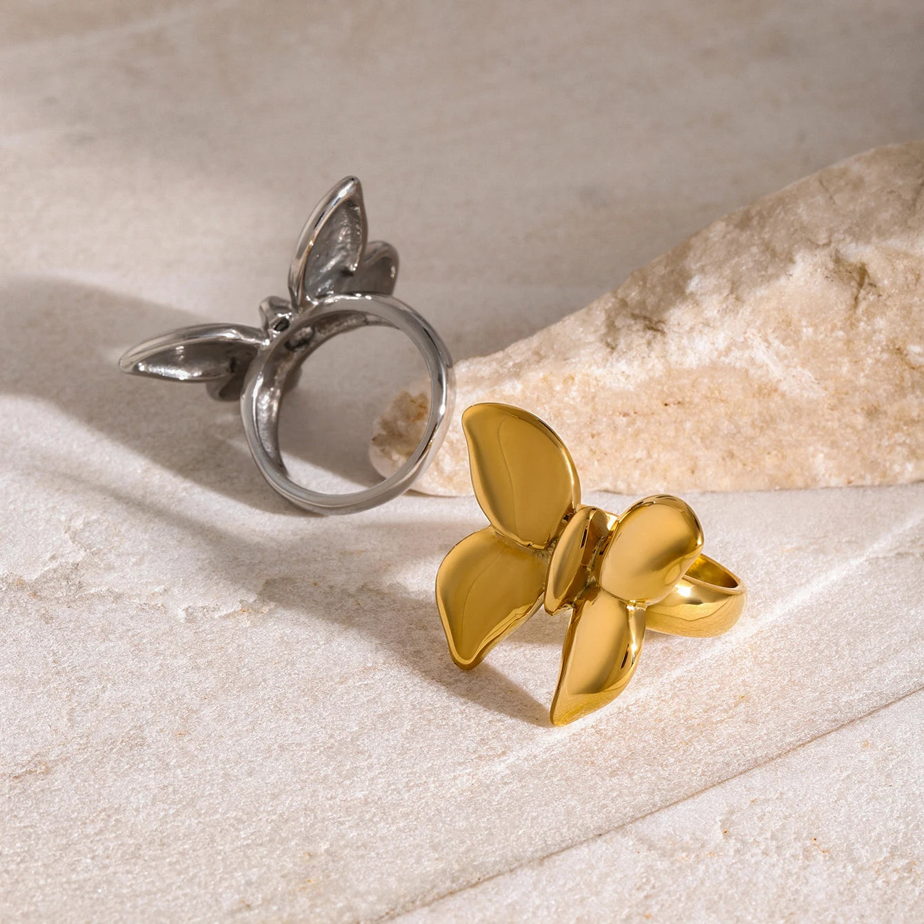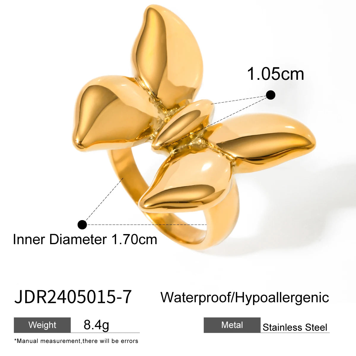 ステンレス304 低ニッケル 水に濡れても錆びにくい 18Kゴールドメッキ リング 蝶々 バタフライ 【YJ01150】