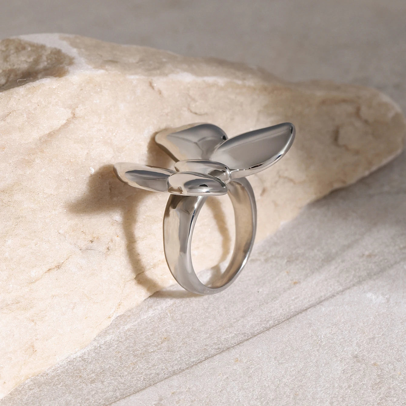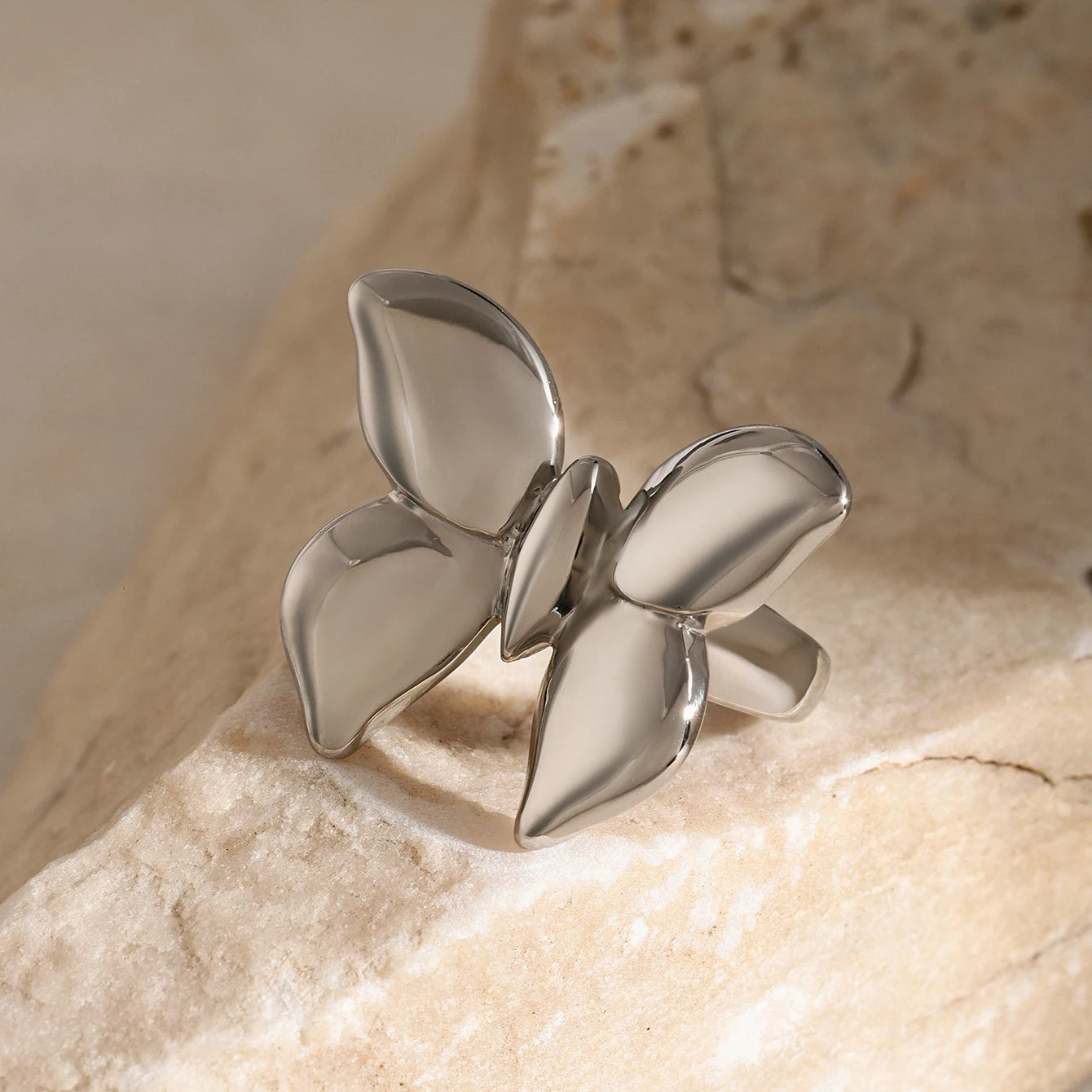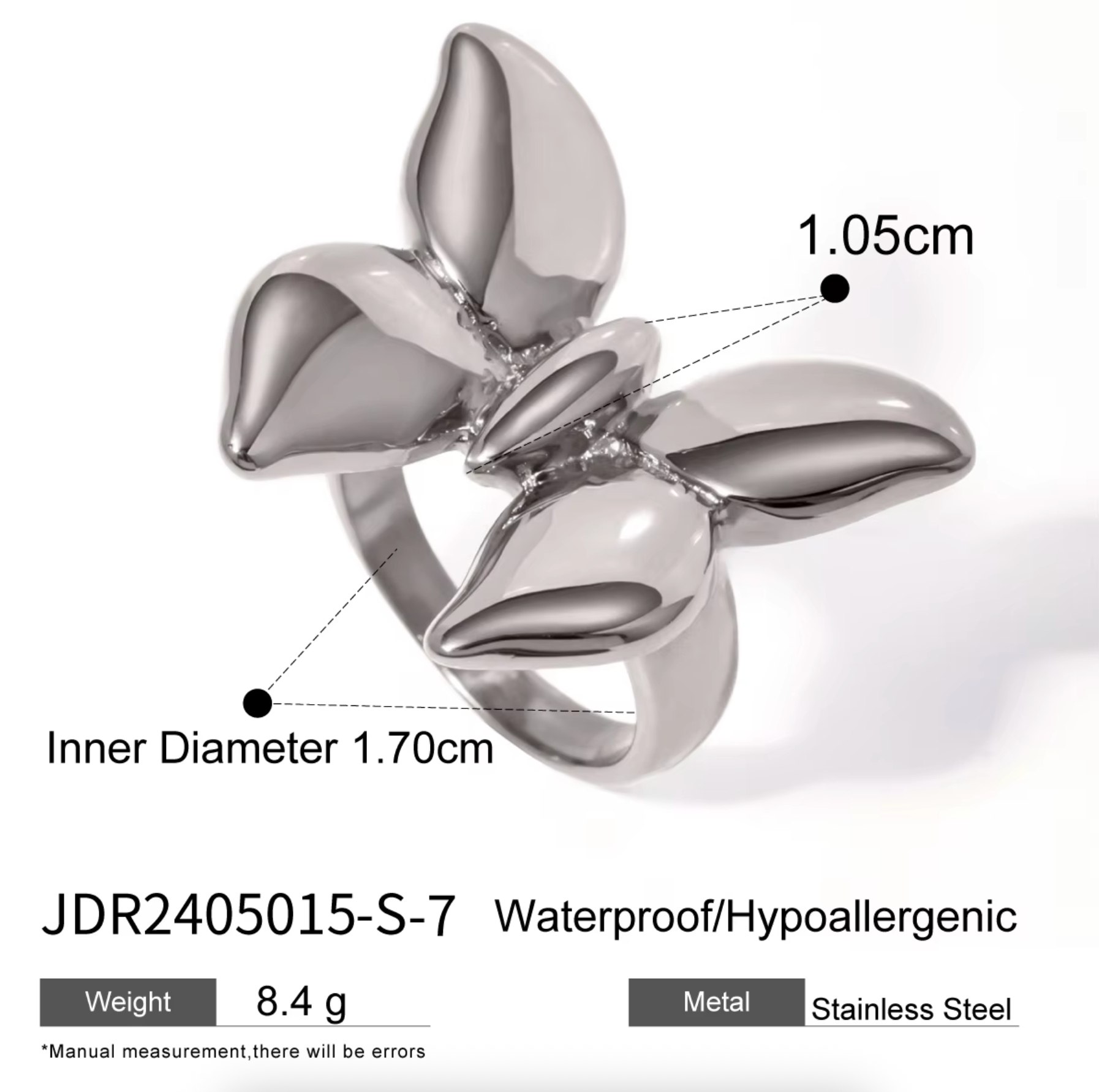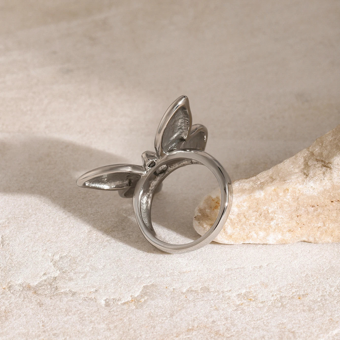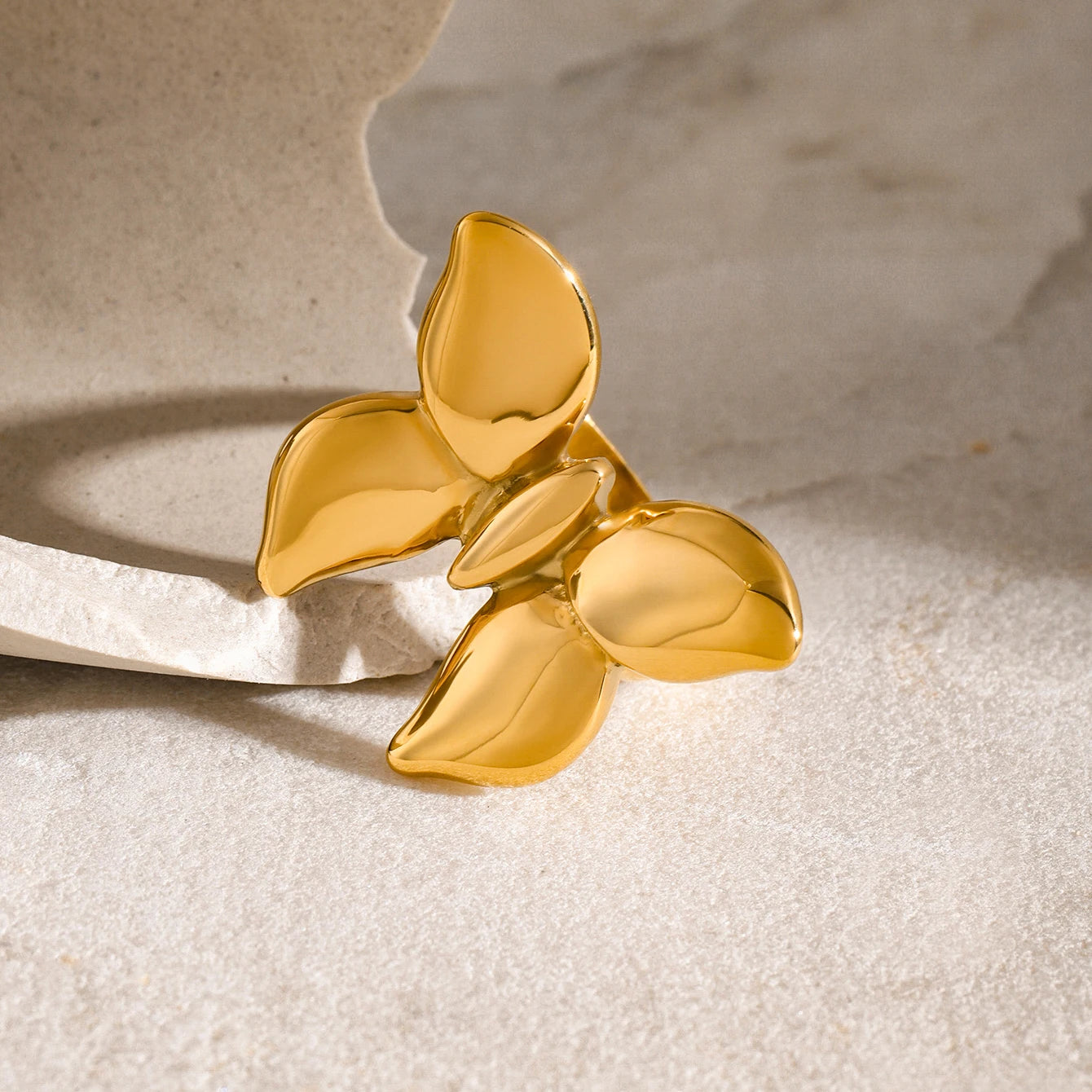 ステンレス304 低ニッケル 水に濡れても錆びにくい 18Kゴールドメッキ リング 蝶々 バタフライ 【YJ01150】