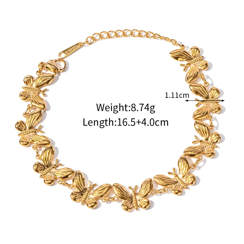 ステンレス304 低ニッケル 水に濡れても錆びにくい 18Kゴールドメッキ ブレスレット 蝶々 バタフライ 【YJ01191】