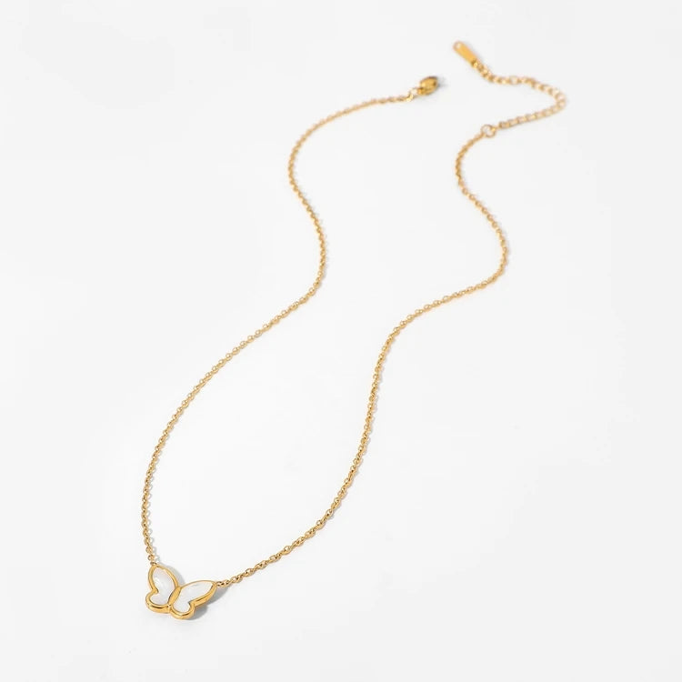 ステンレス304 低ニッケル 水に濡れても錆びにくい 18Kゴールドメッキ ネックレス チェーン 蝶々 バタフライ 【YJ01586】