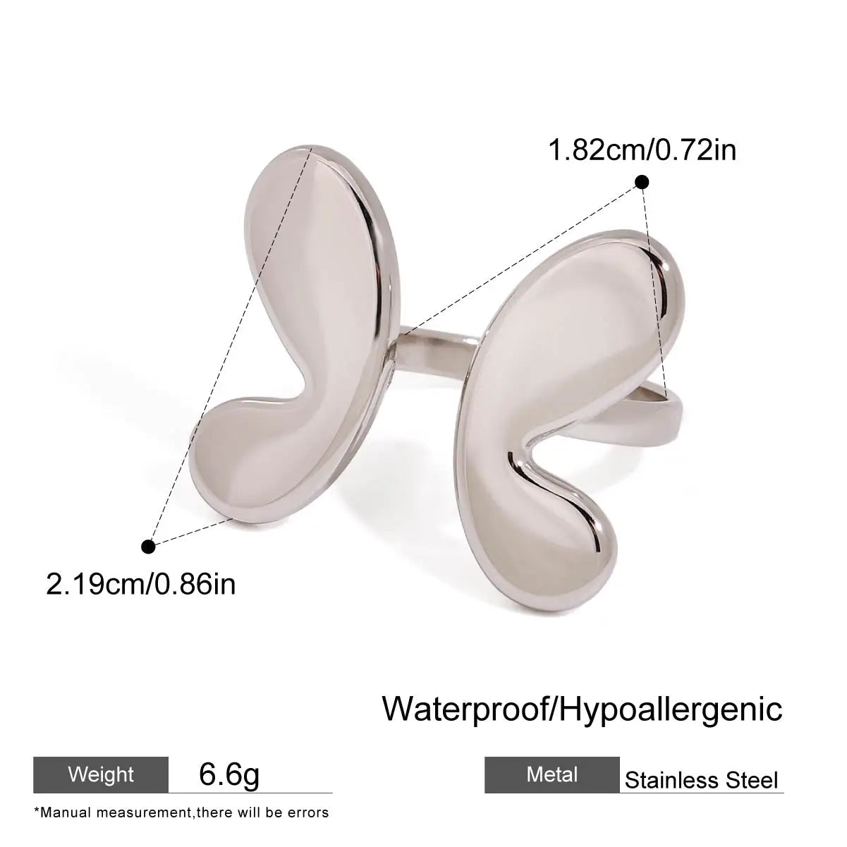 ステンレス304 低ニッケル 水に濡れても錆びにくい 1 リング 蝶々 バタフライ 【YJ02027】