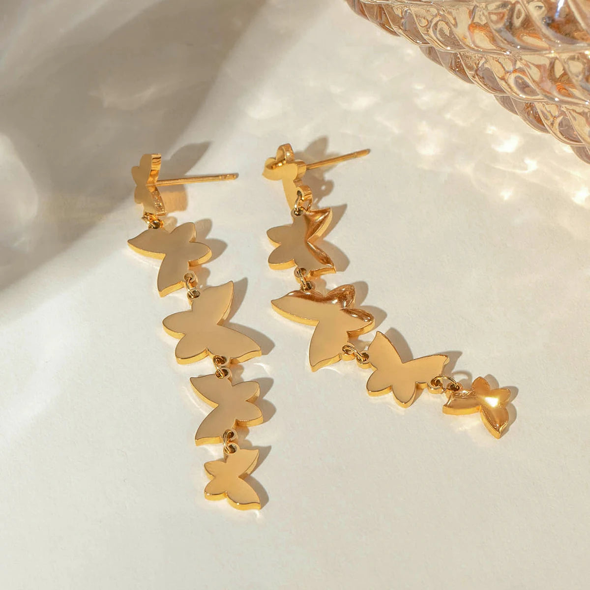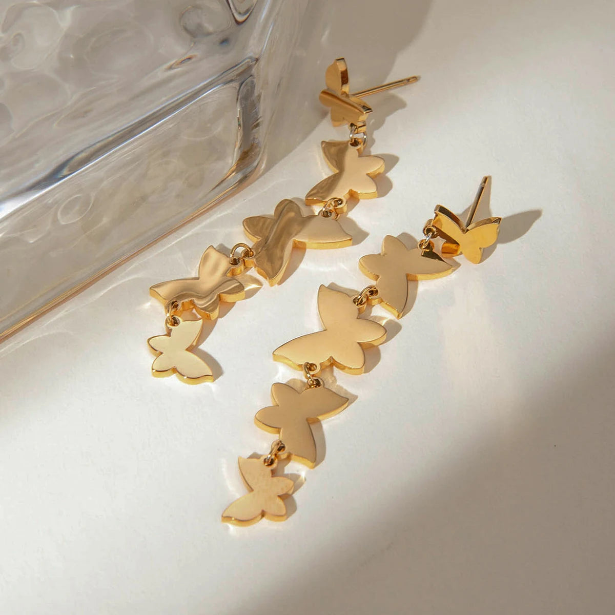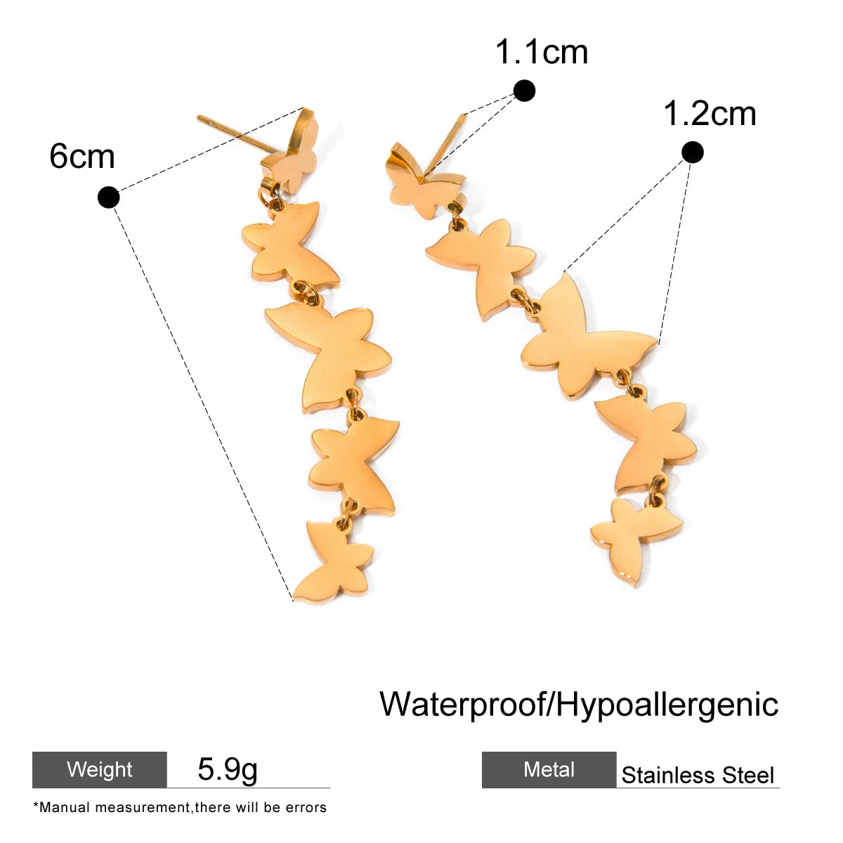 ステンレス304 低ニッケル 水に濡れても錆びにくい 18Kゴールドメッキ ピアス 蝶々 バタフライ 【YJ02128】