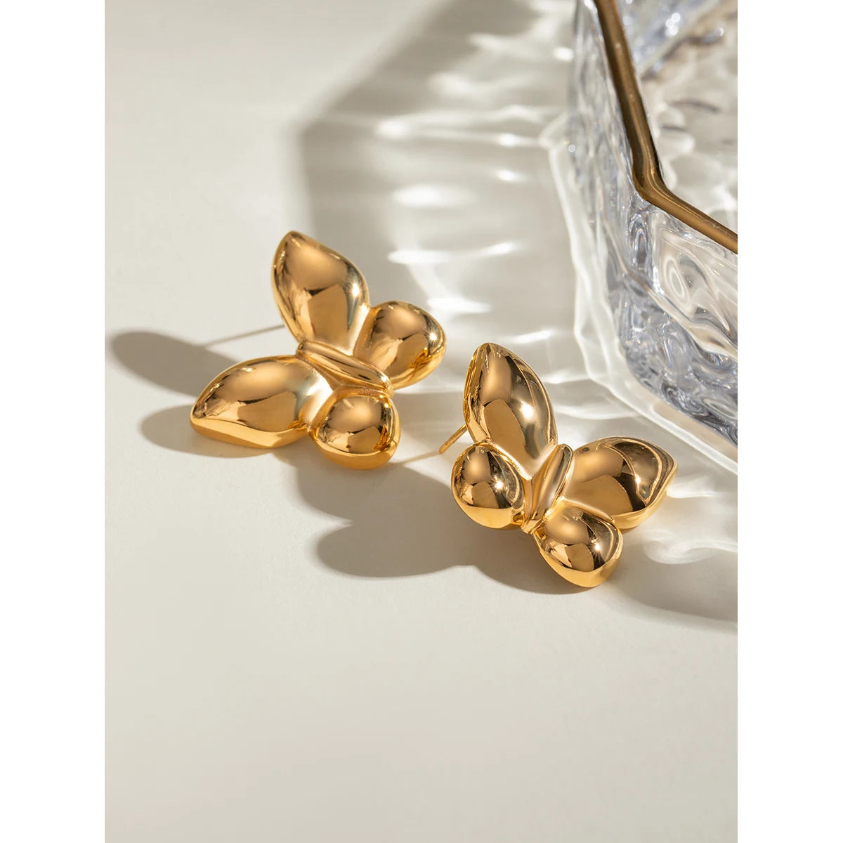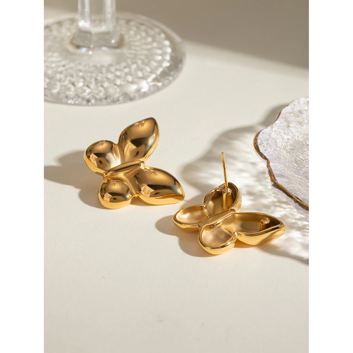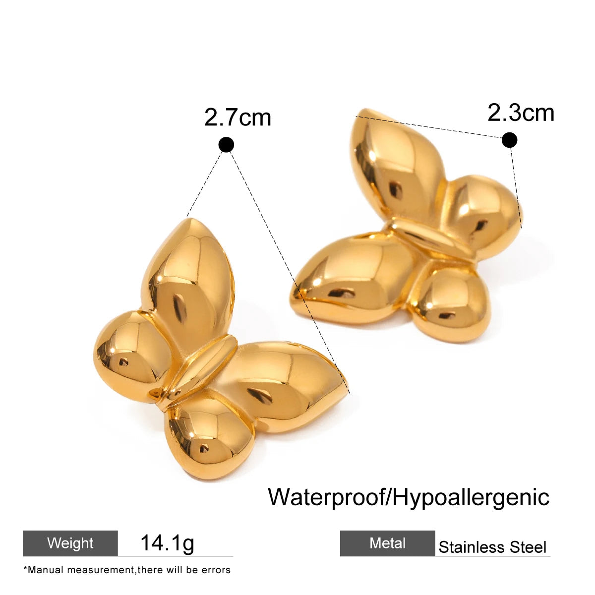 ステンレス304 低ニッケル 水に濡れても錆びにくい 18Kゴールドメッキ ピアス チャンキー 蝶々 バタフライ 【YJ02374】