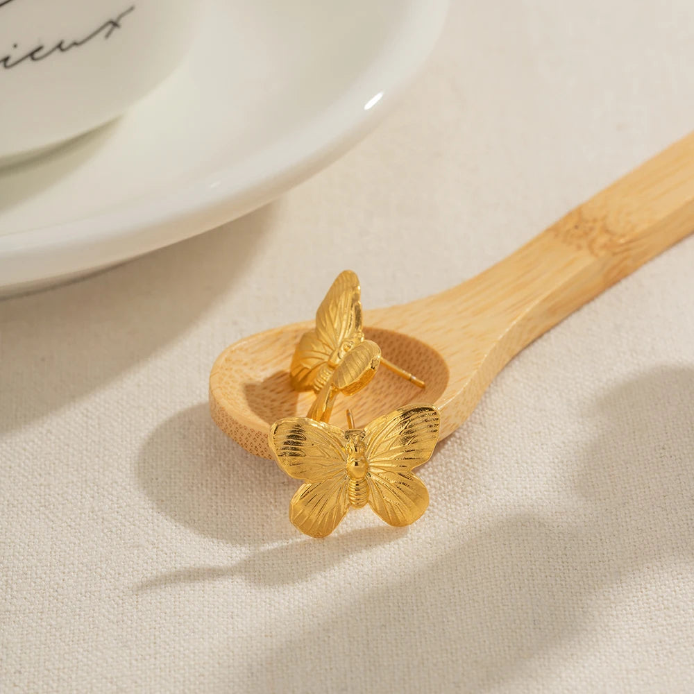 ステンレス304 低ニッケル 水に濡れても錆びにくい 18Kゴールドメッキ ピアス 蝶々 バタフライ 【YJ02412】