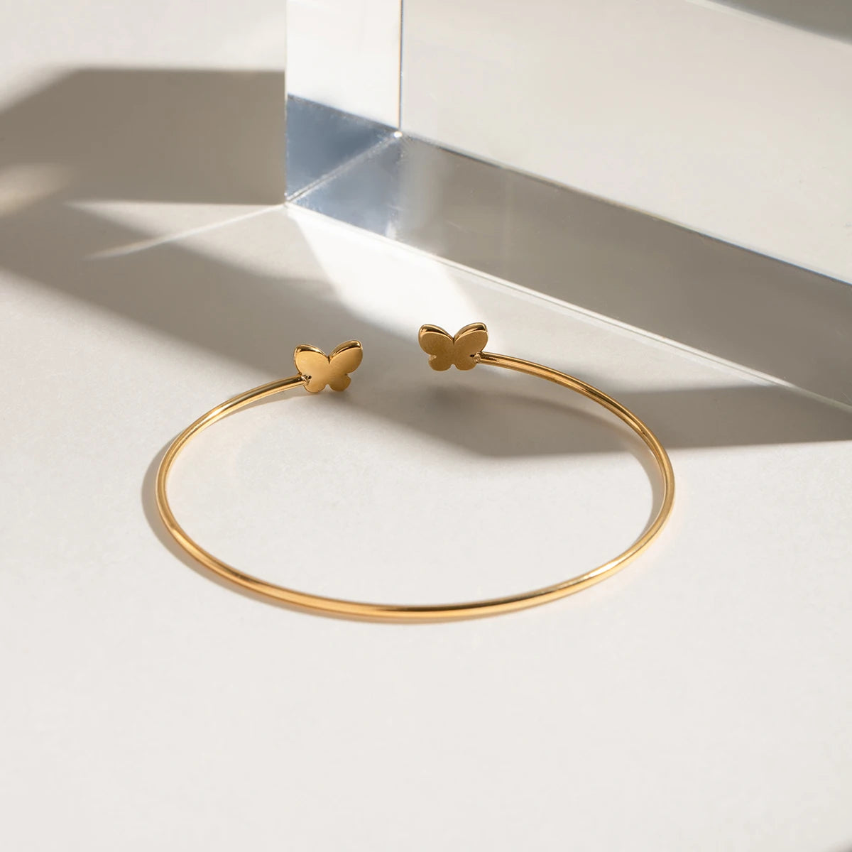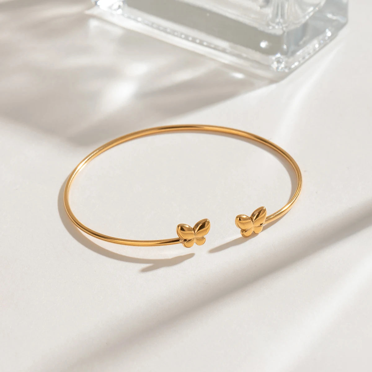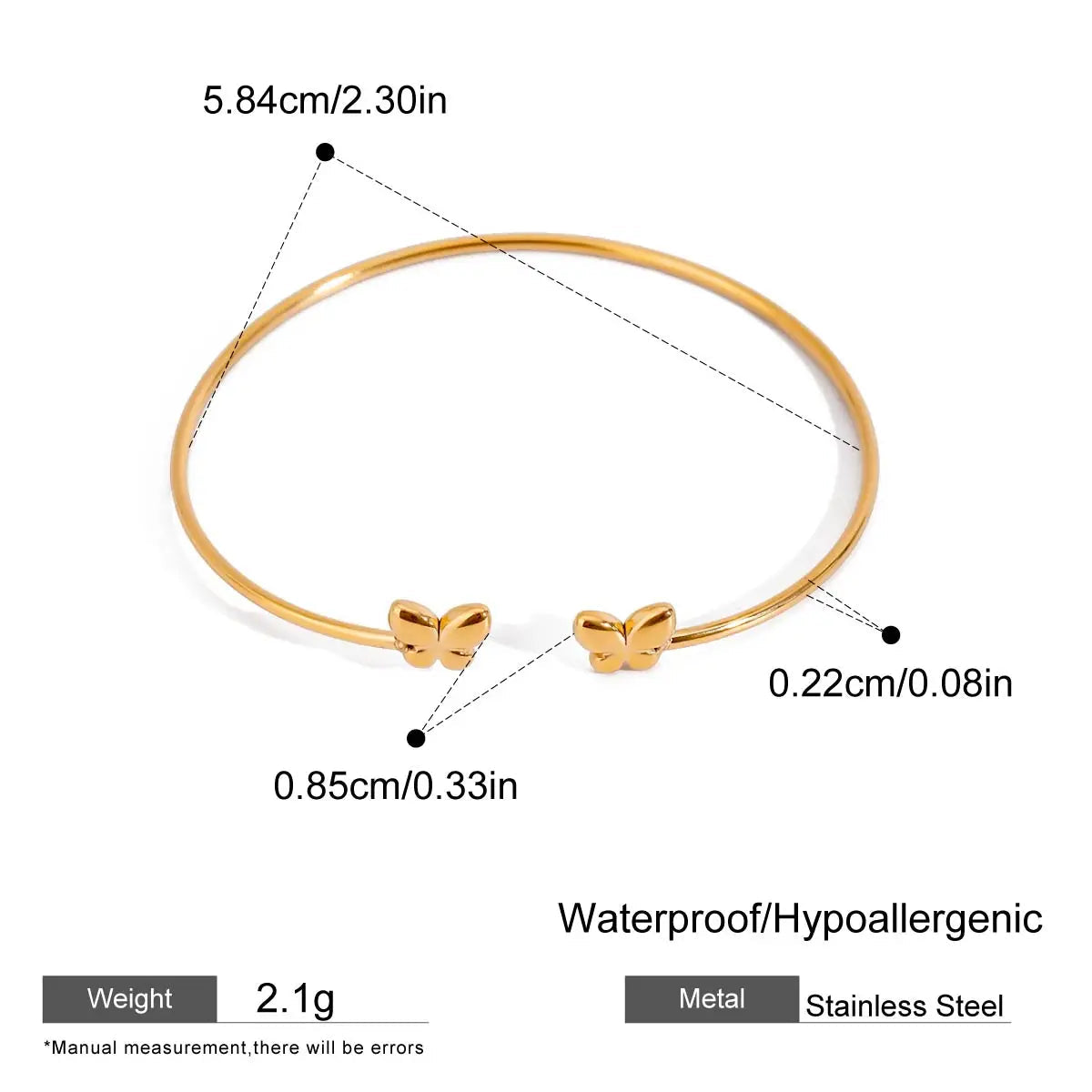 ステンレス304 低ニッケル 水に濡れても錆びにくい 18Kゴールドメッキ ブレスレット 蝶々 バタフライ 【YJ02962】