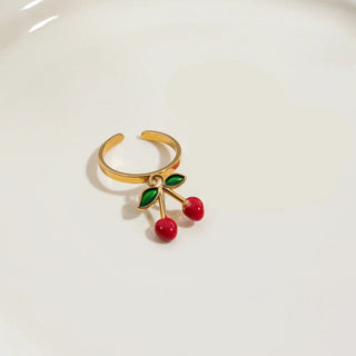 ステンレス304 低ニッケル 水に濡れても錆びにくい 18Kゴールドメッキ リング さくらんぼ チェリー【YJ01100】