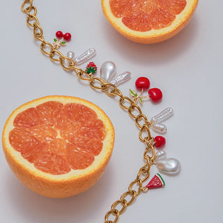 ステンレス304 低ニッケル 水に濡れても錆びにくい 18Kゴールドメッキ ブレスレット ハンドチェーン さくらんぼ チェリー 【YJ01027】