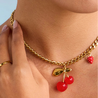 ステンレス304 低ニッケル 水に濡れても錆びにくい 18Kゴールドメッキ ネックレス チャーム さくらんぼ チェリー 【YJ01614】