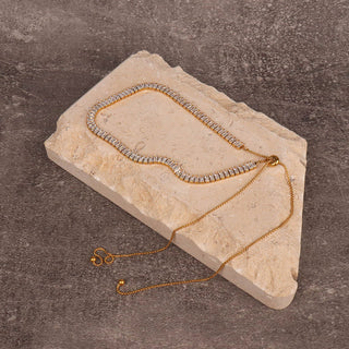 ステンレス304 低ニッケル 水に濡れても錆びにくい 18Kゴールドメッキ ネックレス ジルコニア チョーカー【YJ02915】