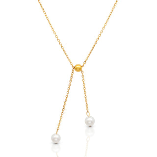 ステンレス304 低ニッケル 水に濡れても錆びにくい 18Kゴールドメッキ ネックレス リボン パール チョーカー【YJ02139】