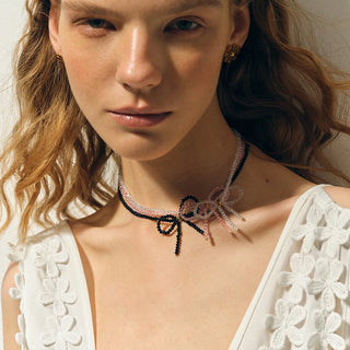 ステンレス304 ニッケルフリー 水に濡れても錆びにくい 18Kゴールドメッキ チョーカー ネックレス ビーズ リボン【YJ00864】