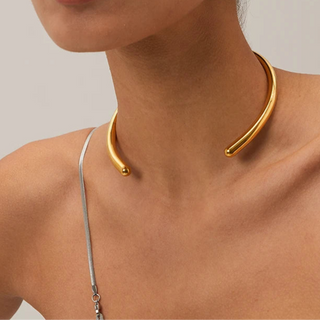 ステンレス304 低ニッケル 水に濡れても錆びにくい 18Kゴールドメッキ ネックレス チョーカー 【YJ01273】
