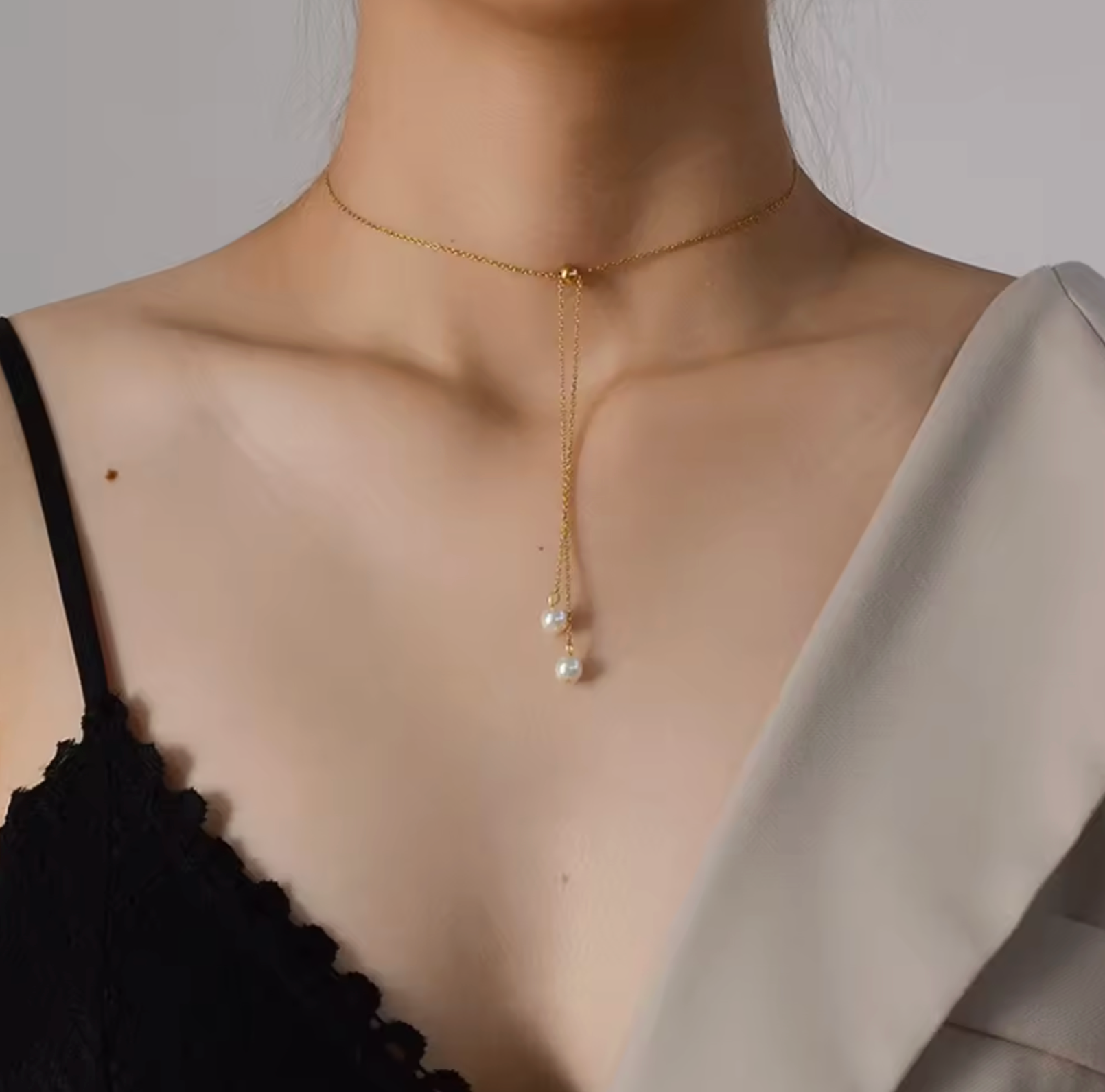316Lサージカルステンレス ネックレス チョーカー チェーン パール【NY01621】