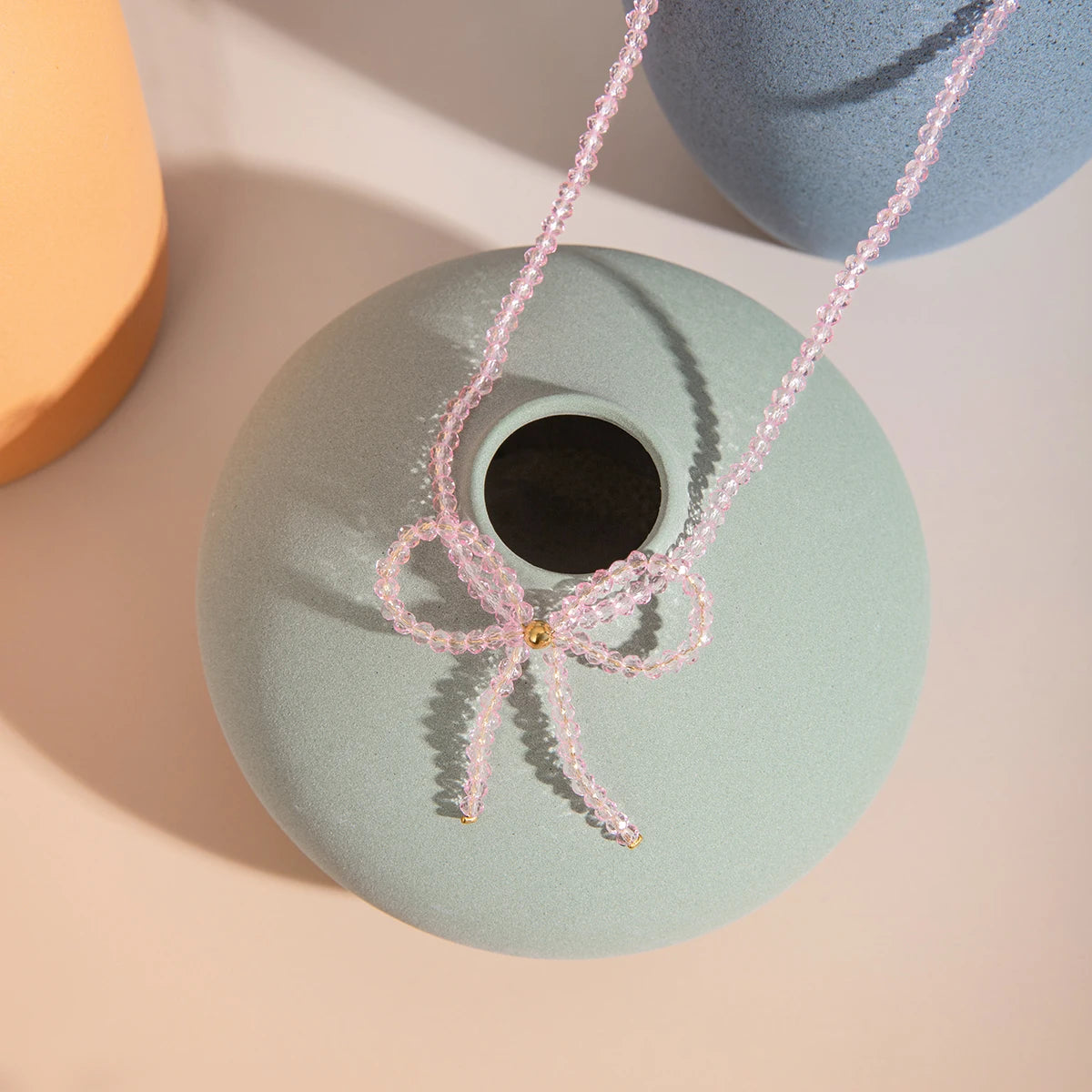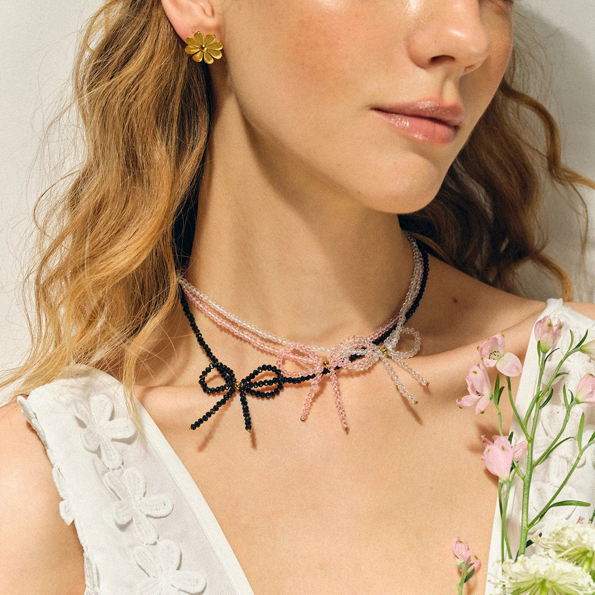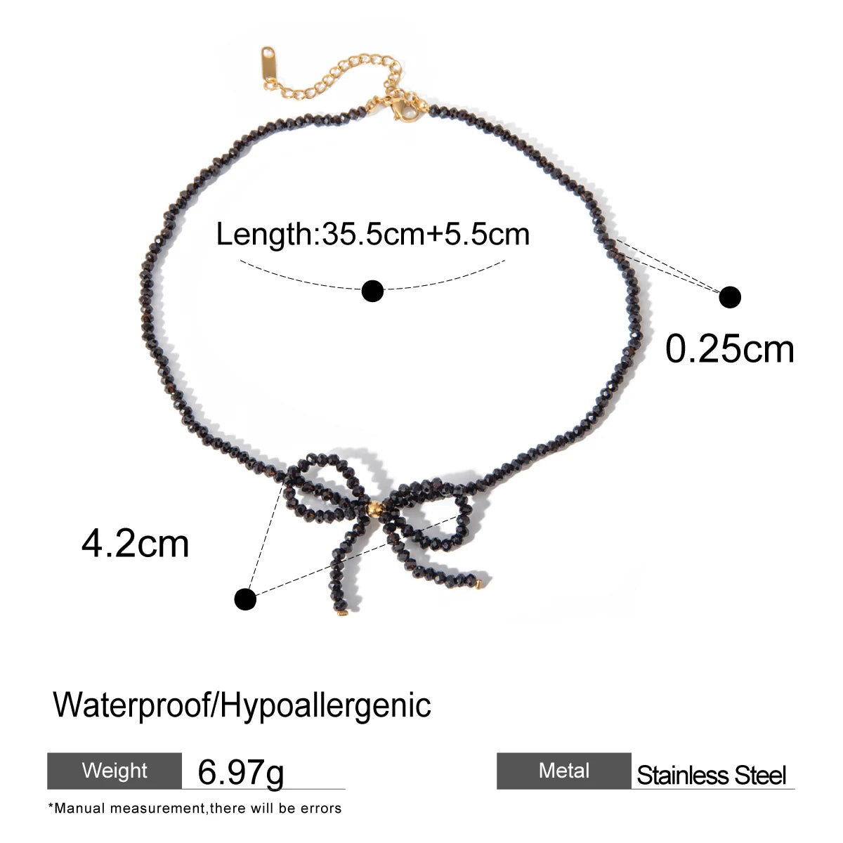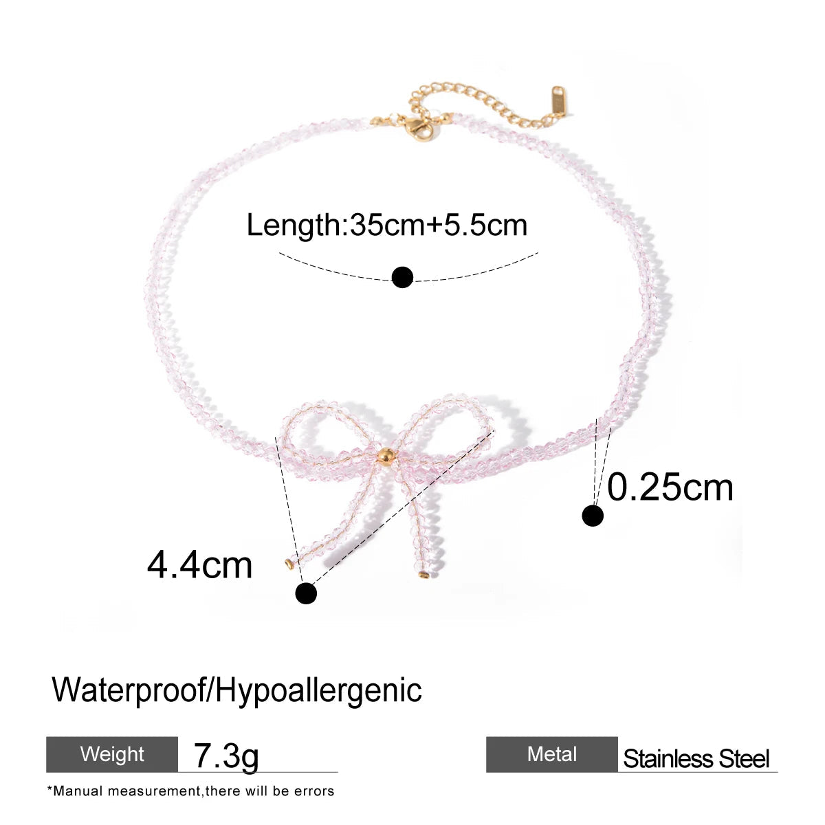 ステンレス304 ニッケルフリー 水に濡れても錆びにくい 18Kゴールドメッキ チョーカー ネックレス ビーズ リボン【YJ00864】