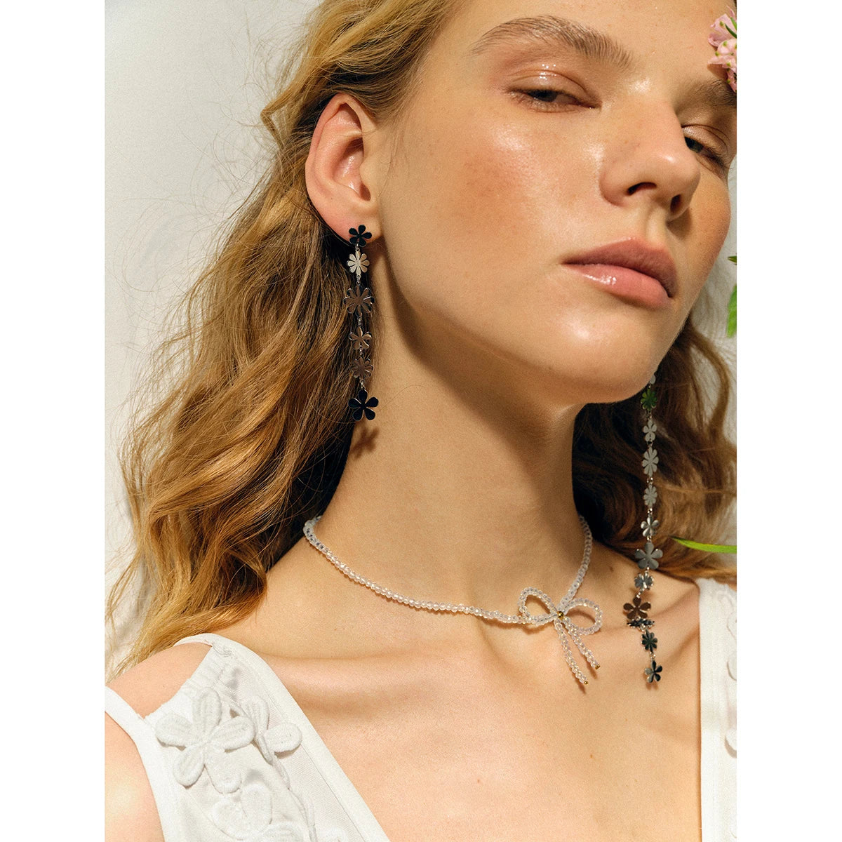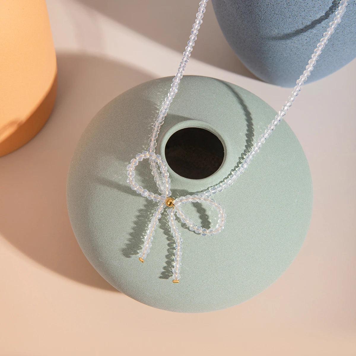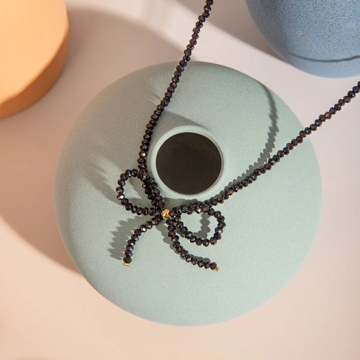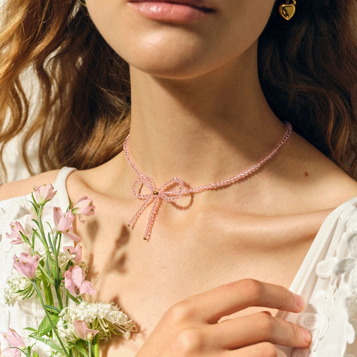 ステンレス304 ニッケルフリー 水に濡れても錆びにくい 18Kゴールドメッキ チョーカー ネックレス ビーズ リボン【YJ00864】