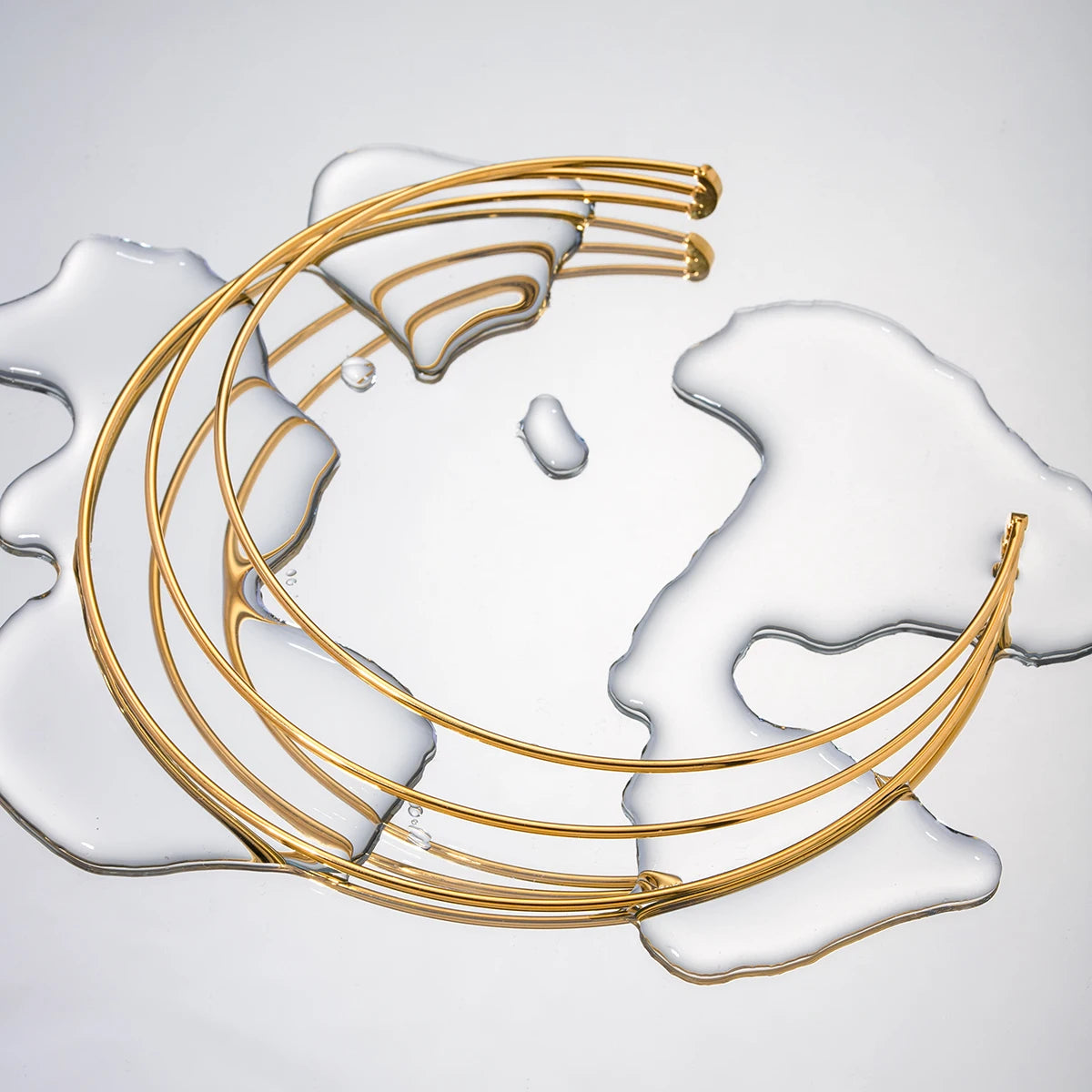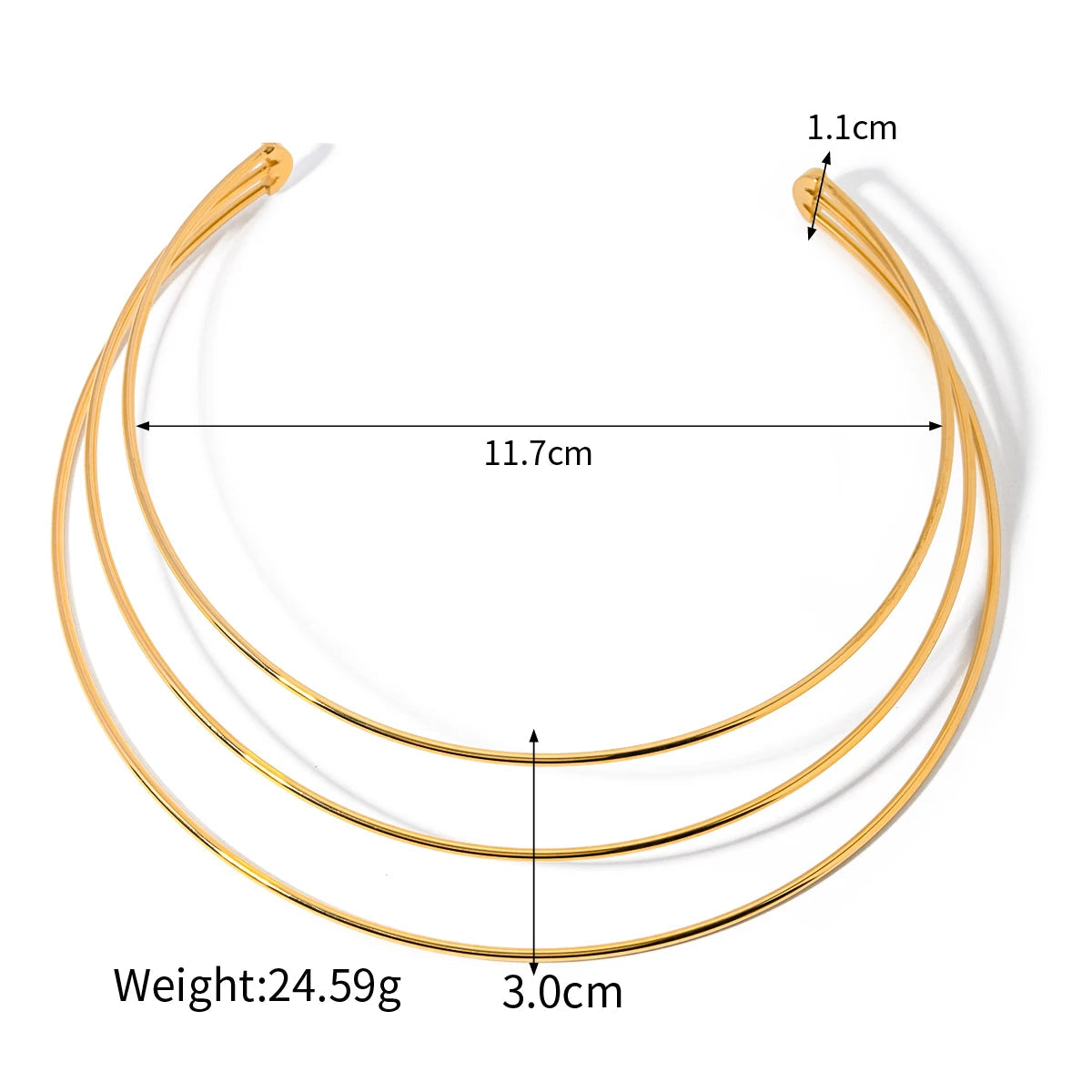 ステンレス304 低ニッケル 水に濡れても錆びにくい 18Kゴールドメッキ ネックレス 3連 チョーカー 【YJ02222】