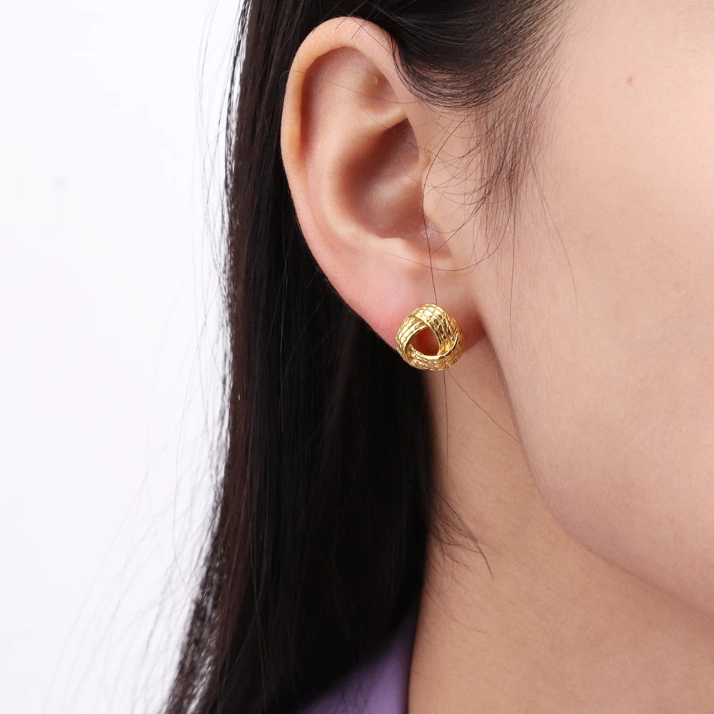 - ピアスのポスト部分は素材の特性上、キャッチがきつく感じられる場合や、スムーズに取り外せないことがありますが、これは不良品ではありませんのでご了承ください。特に新品時はゴールドメッキコーティングの厚みにより、やや固めに感じることがございます。無理に力を加えるとポストの曲がりや破損につながる可能性があるため、優しくゆっくりと着脱いただくことをおすすめします。