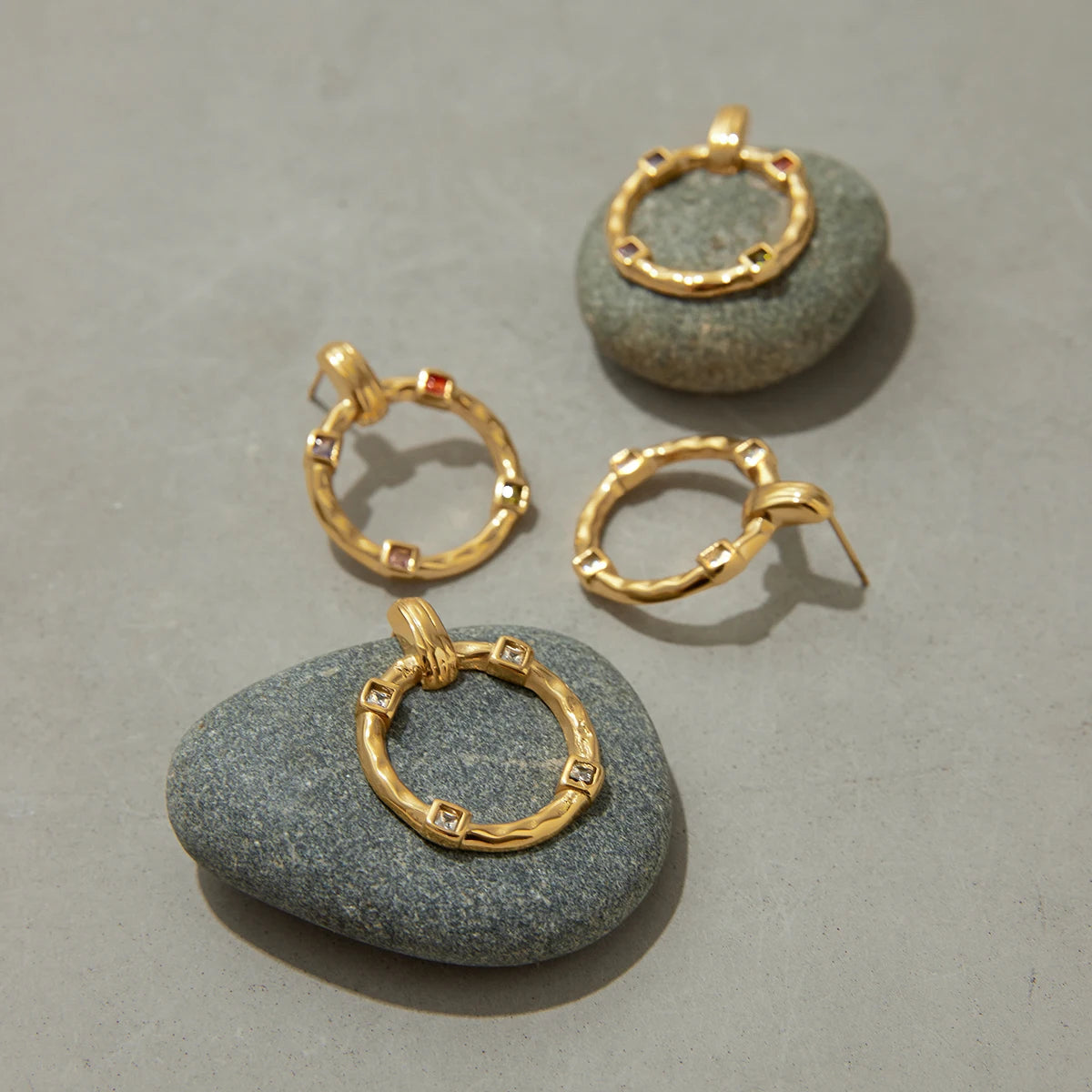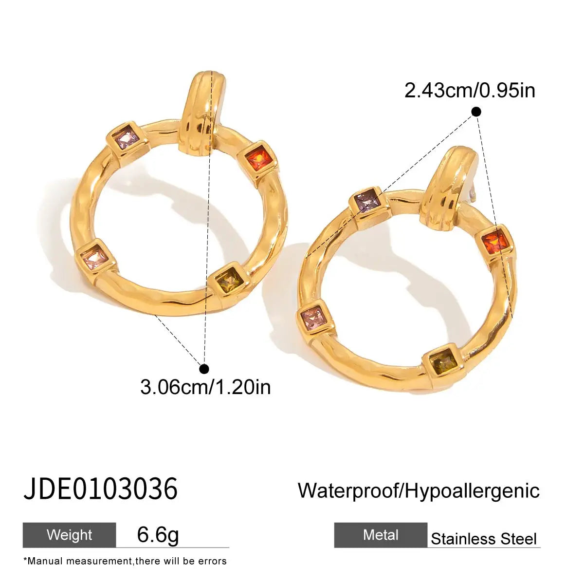 ステンレス304 ニッケルフリー 水に濡れても錆びにくい 18Kゴールドメッキ ピアス サークル ジルコニア 【YJ00060】