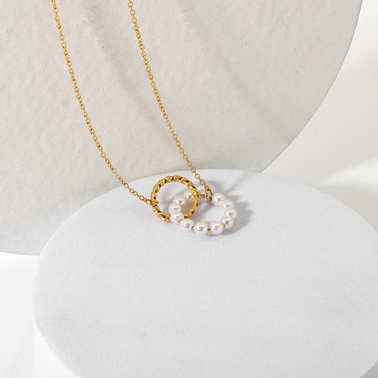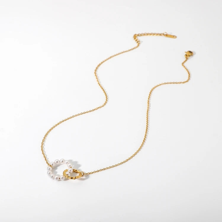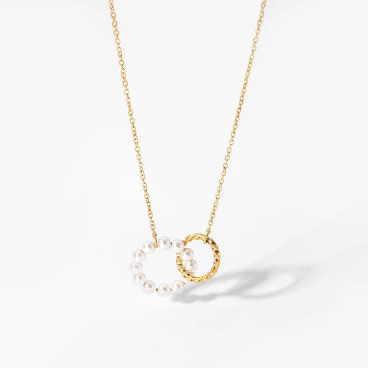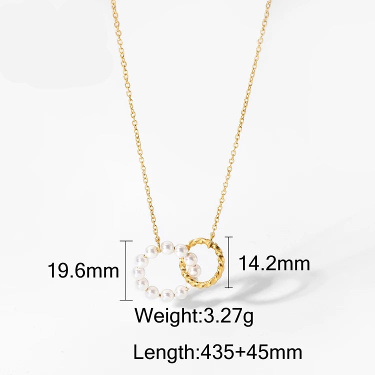 ステンレス304 低ニッケル 水に濡れても錆びにくい 18Kゴールドメッキ ネックレス サークル パール 【YJ01705】