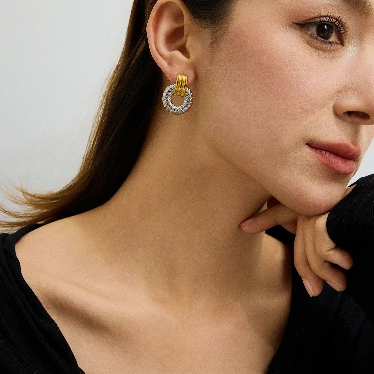 ステンレス304 低ニッケル 水に濡れても錆びにくい 18Kゴールドメッキ ピアス サークル【YJ01974】