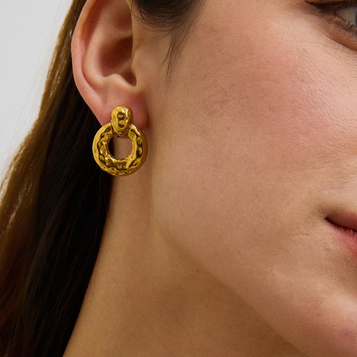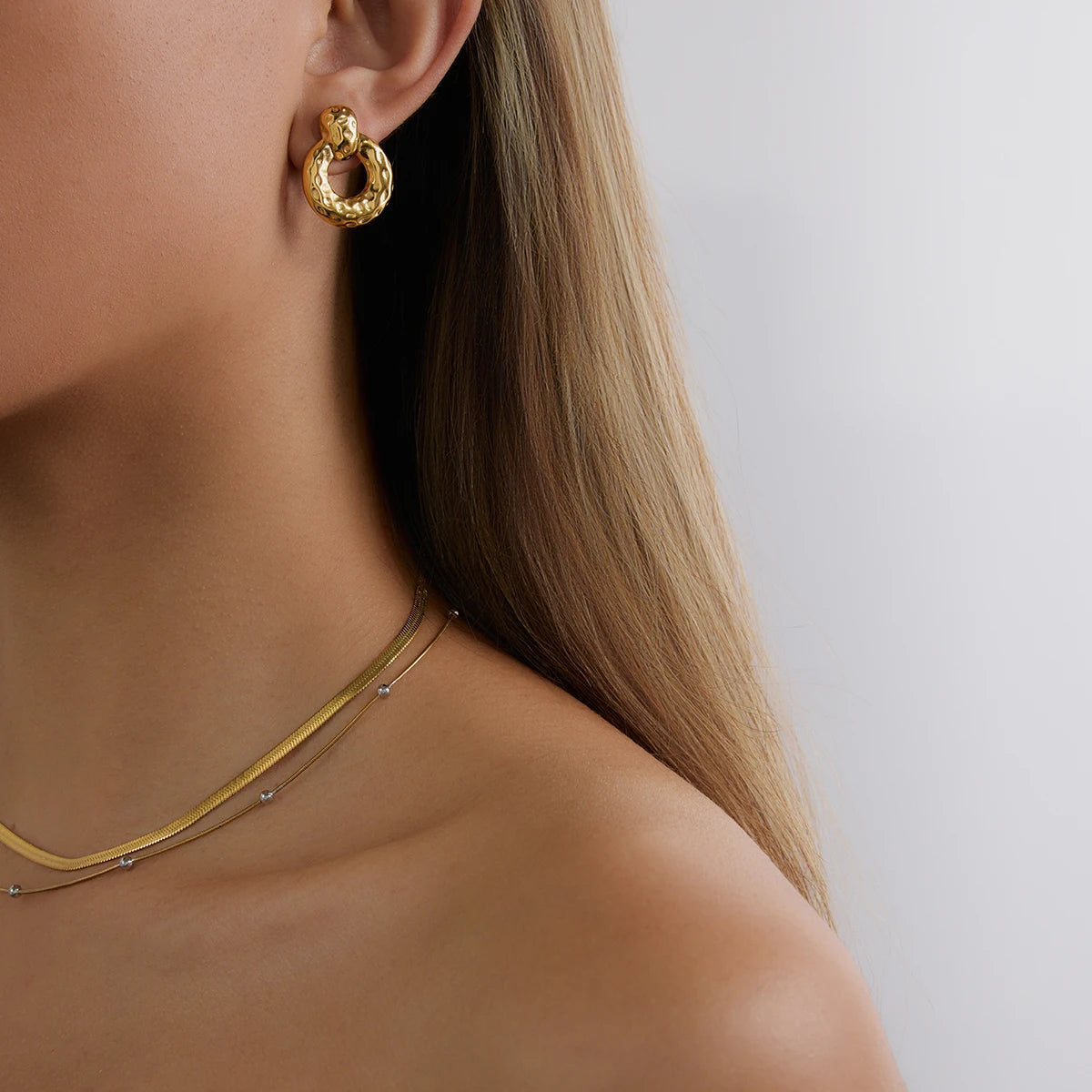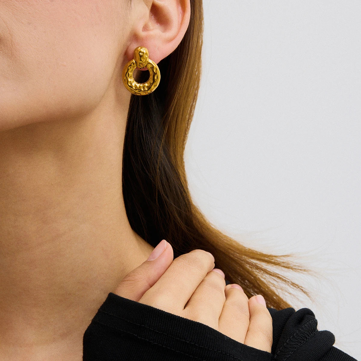 - ピアスのポスト部分は素材の特性上、キャッチがきつく感じられる場合や、スムーズに取り外せないことがありますが、これは不良品ではありませんのでご了承ください。特に新品時はゴールドメッキコーティングの厚みにより、やや固めに感じることがございます。無理に力を加えるとポストの曲がりや破損につながる可能性があるため、優しくゆっくりと着脱いただくことをおすすめします。