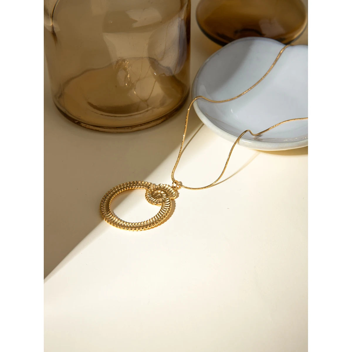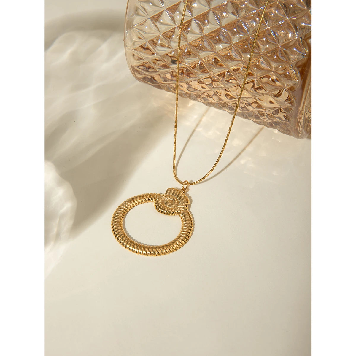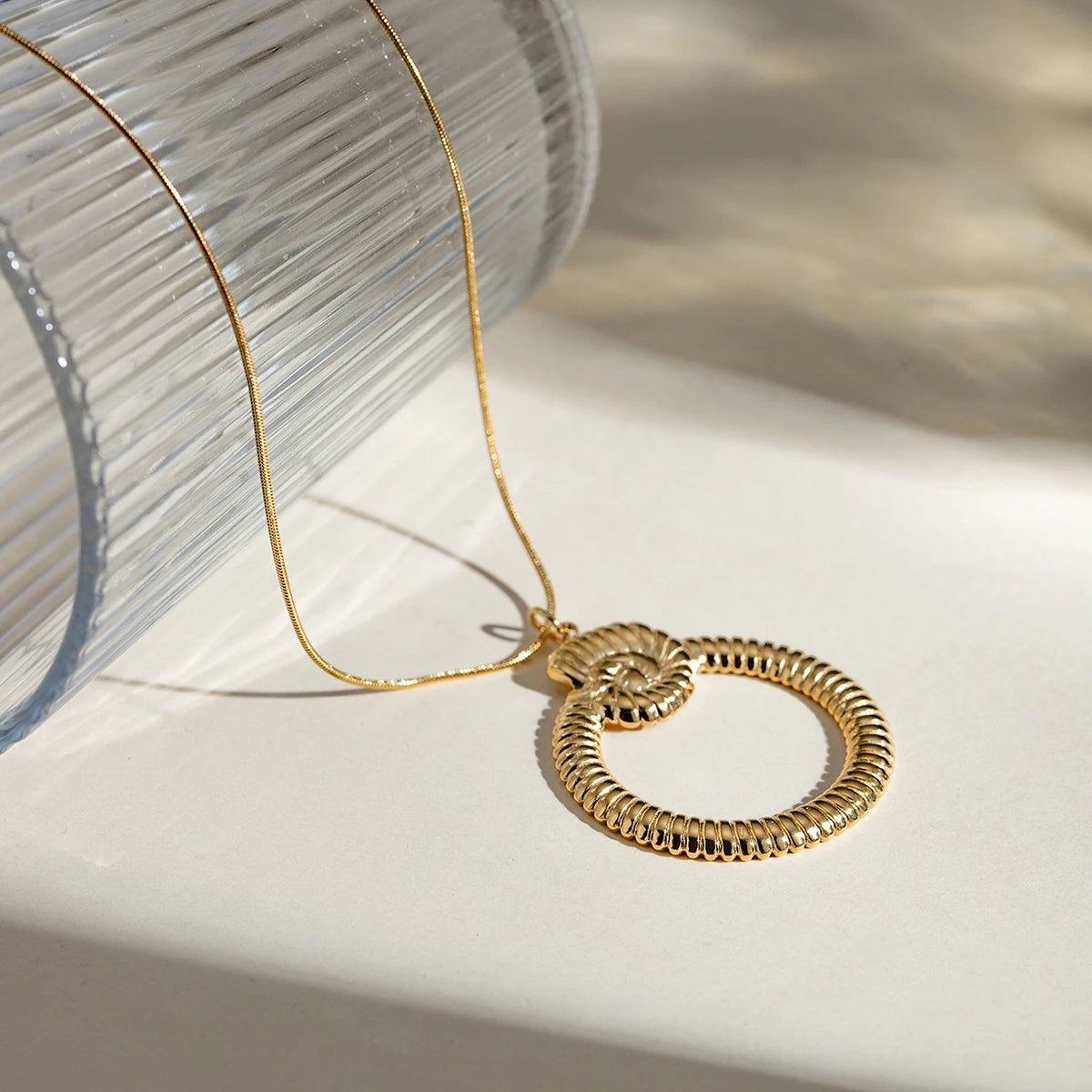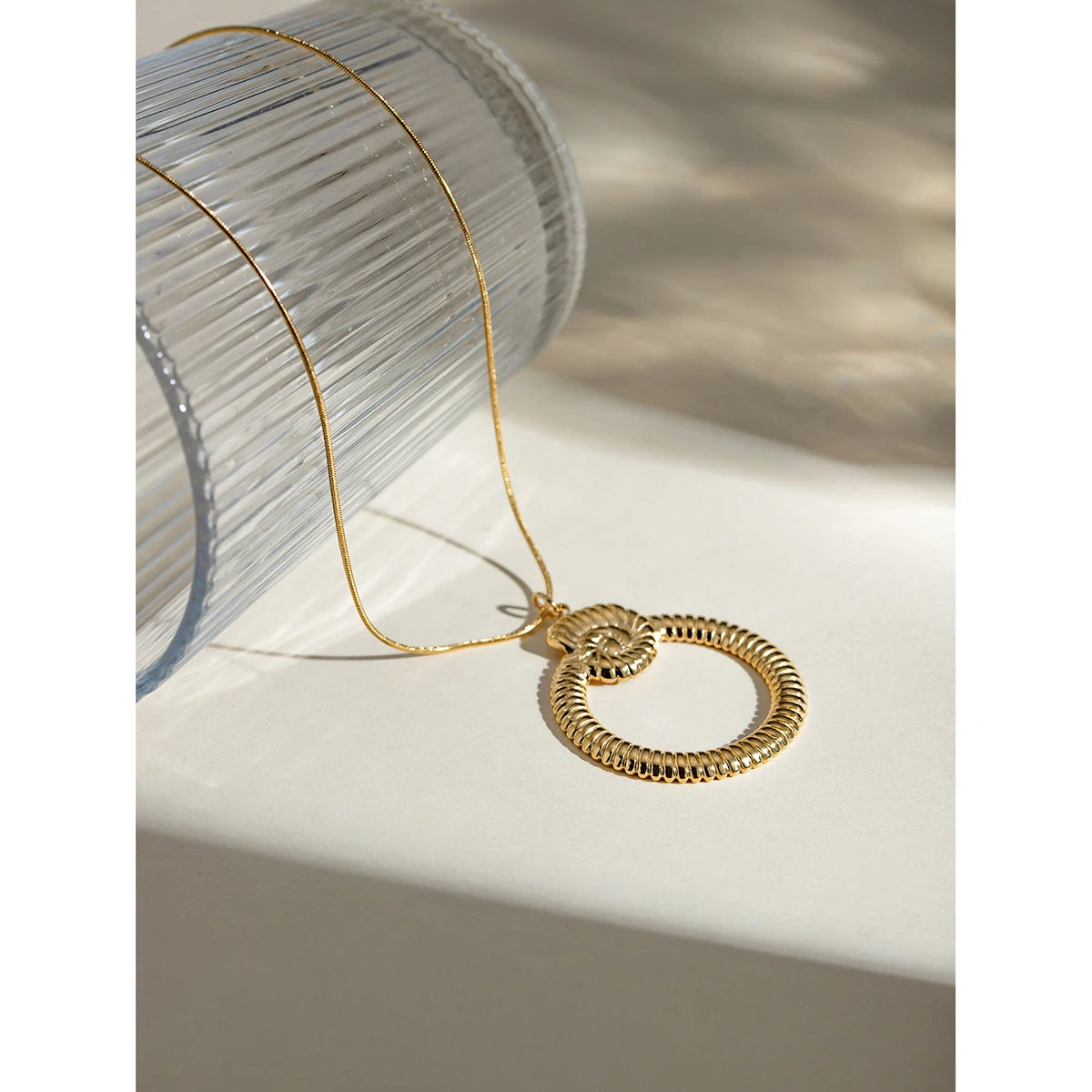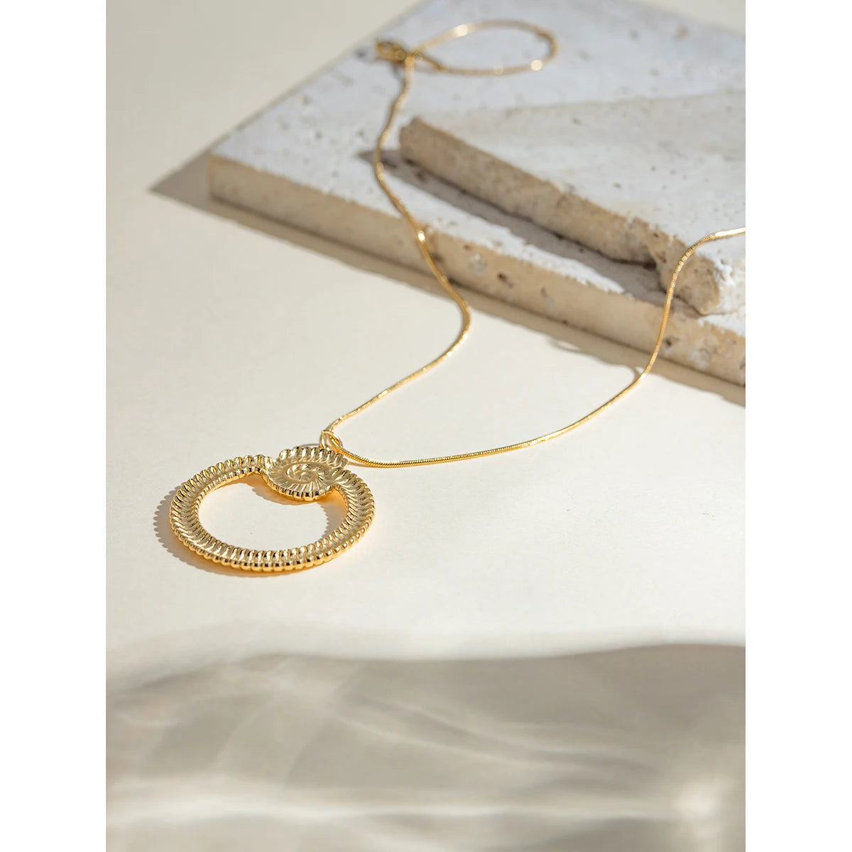 ステンレス304 低ニッケル 水に濡れても錆びにくい 18Kゴールドメッキ ネックレス サークル 貝殻 シェル【YJ02148】