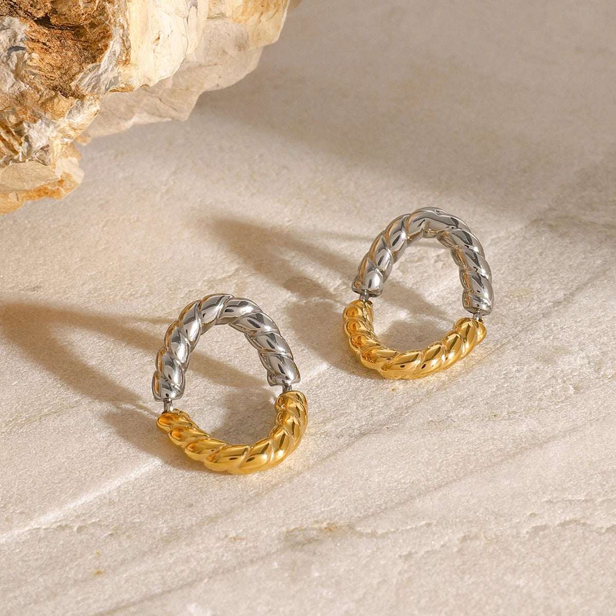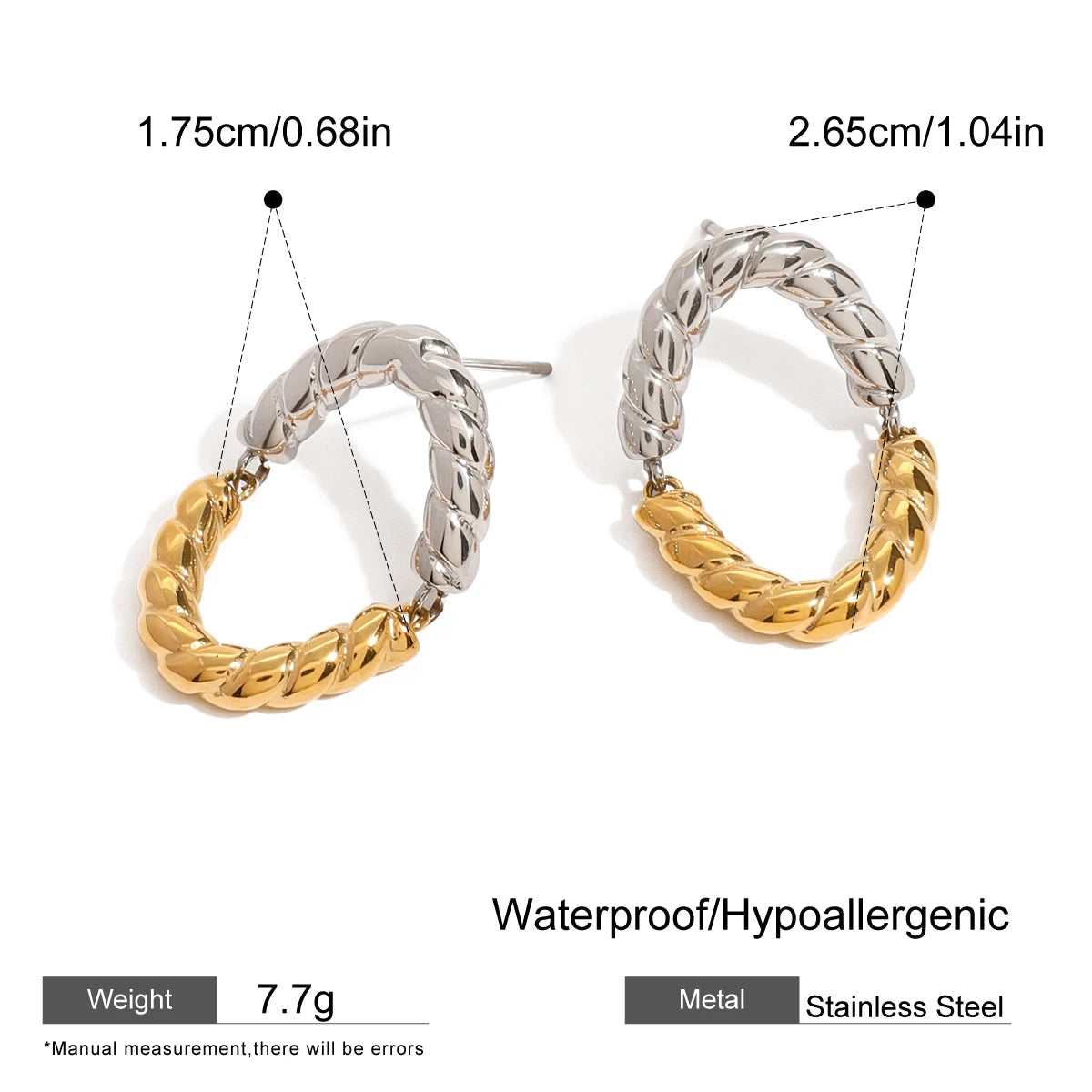 ステンレス304 低ニッケル 水に濡れても錆びにくい 18Kゴールドメッキ ピアス サークル ツイスト 【YJ03233】