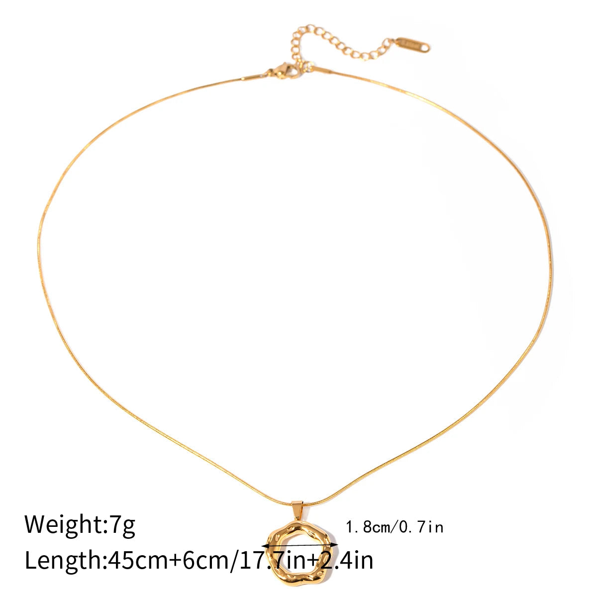 ステンレス304 低ニッケル 水に濡れても錆びにくい 18Kゴールドメッキ ネックレス スネークチェーン サークル 【YJ03675】