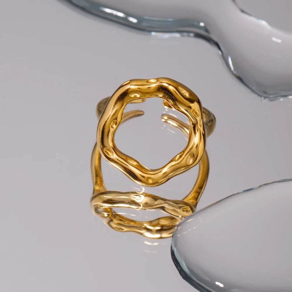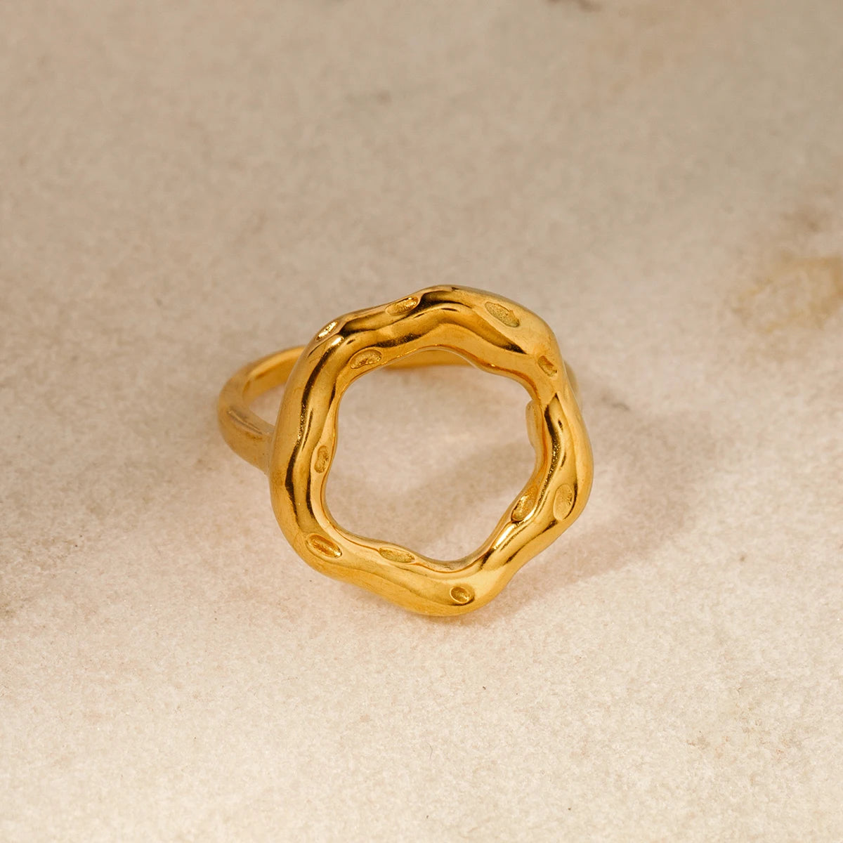 ステンレス304 低ニッケル 水に濡れても錆びにくい 18Kゴールドメッキ リング サークル 【YJ03756】