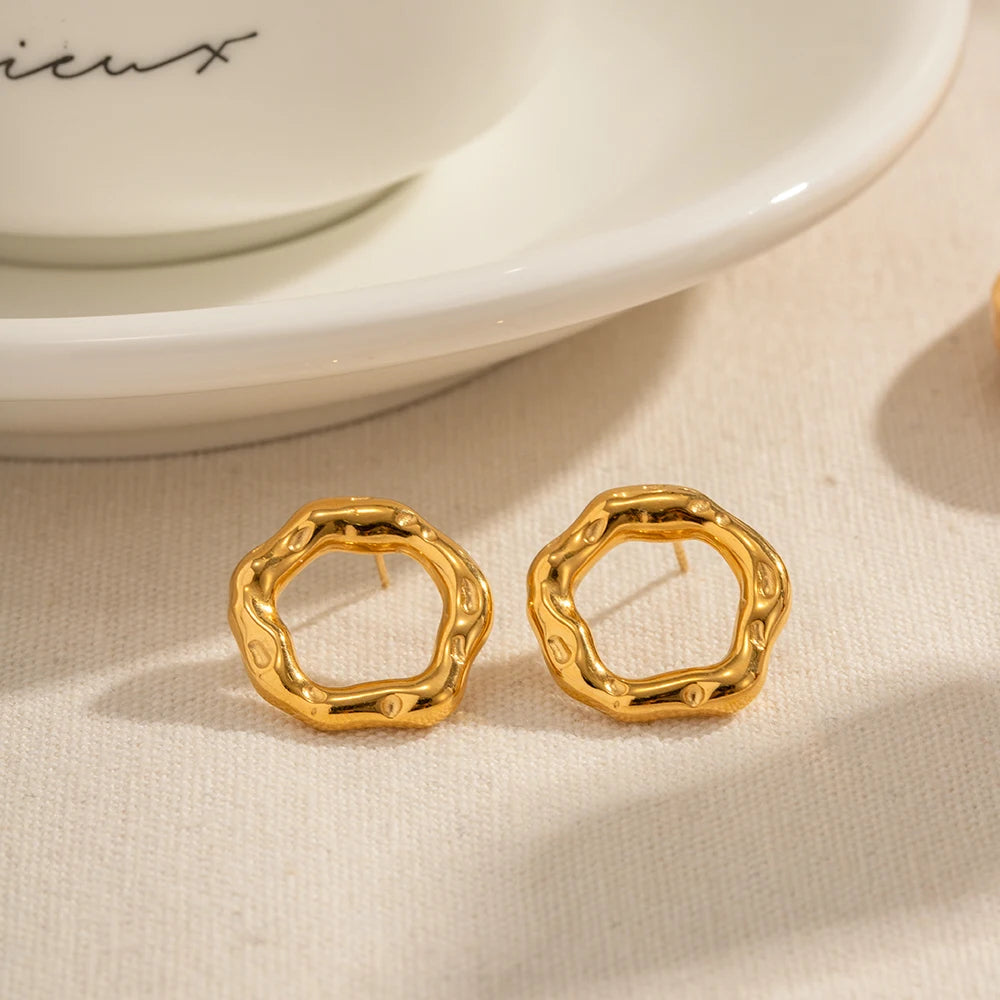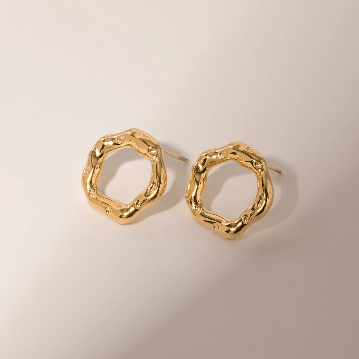 ステンレス304 低ニッケル 水に濡れても錆びにくい 18Kゴールドメッキ ピアス サークル 【YJ04030】