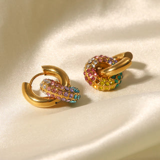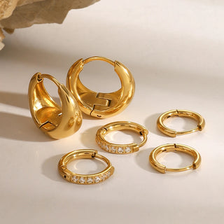 ステンレス304 ニッケルフリー 水に濡れても錆びにくい 18Kゴールドメッキ フープ サークル ピアス ジルコニア 【YJ00906】