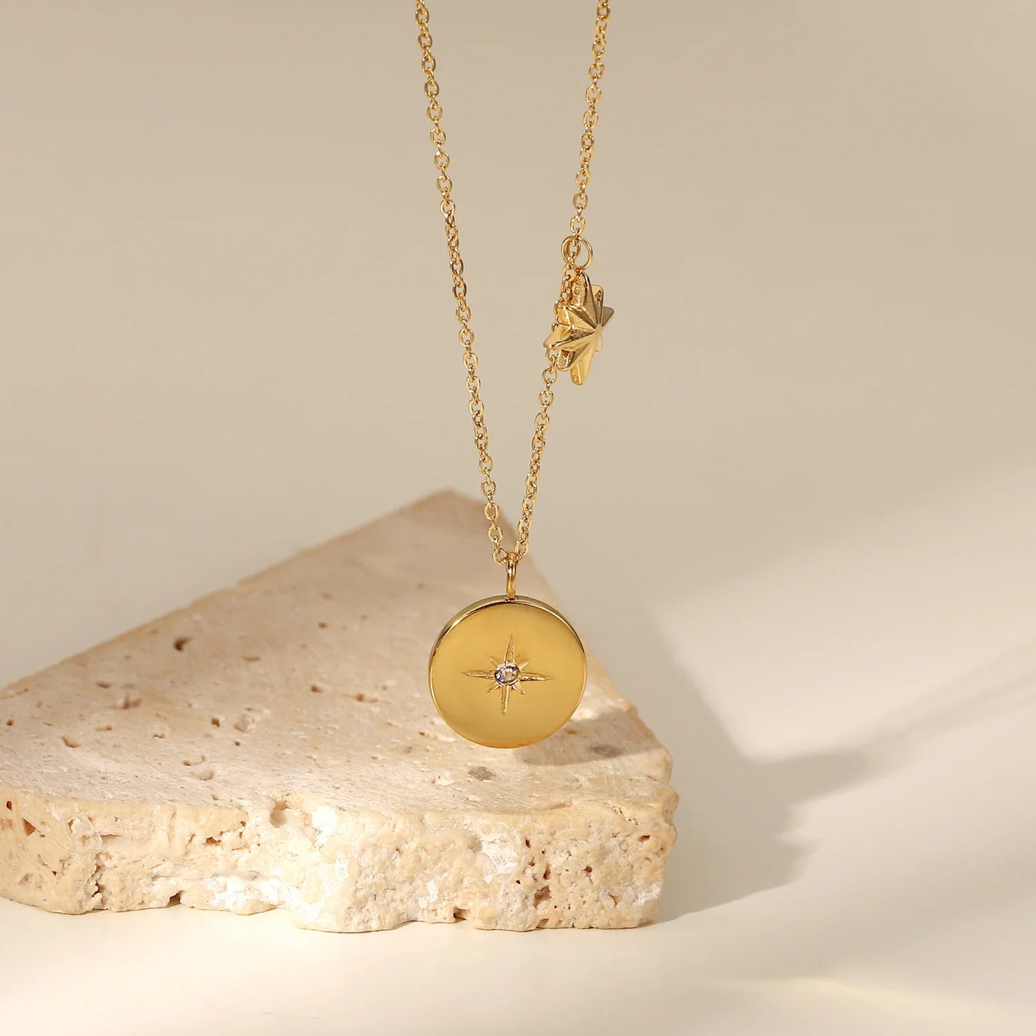 ステンレス304 低ニッケル 水に濡れても錆びにくい 18Kゴールドメッキ ネックレス コイン 【YJ01702】